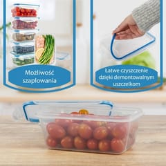 Pojemniki do przechowywania żywności 6x 1000 ml Classbach C-FHD 4023 KClassbach C-FHD 4023 K to zestaw składający się z 6 transparentnych pojemników z hermetycznym zamknięciem o pojemności 1000 ml każdy. Są stworzone do przechowywania żywności, zarówno składników jak i całych dań. Pojemniki są również świetnym rozwiązaniem jeśli chcemy zabrać ze sobą ulubioną potrawę do pracy. Posiadają one hermetyczne zamknięcia Click & Safe, dzięki którym żywność nie będzie się wylewać ani wysypywać, co mogło by wpłynąć negatywnie na bezpośrednie otoczenie pojemnika czy świeżość przechowywanych potraw. Zestaw C-FHD 4023 K składa się z dwóch kompletów C-FHD 4006 K. Został wykonany w całości z wysokiej jakości tworzywa sztucznego, odpornego na temperaturę w zakresie -40 do +110°C. Możemy więc przechowywać je w zamrażarce, a także podgrzewać w nich potrawy przy użyciu kuchenki mikrofalowej. Tworzywo jest bezpieczne dla zdrowia i pozbawione szkodliwych substancji (BPA FREE)Pojemniki są niezwykle łatwe w utrzymaniu czystości - uszczelka jest demontowalna a całość możemy umyć przy pomocy zmywarki do naczyń.Najważniejsze cechy zestawu Classbach C-FHD 4023 K:Zestaw 6 pojemników (2x C-FHD 4006 K) na żywność do wszechstronnego zastosowaniaIdealny do zamrażania, podgrzewania, przechowywania oraz transportuPrzechowywanie żywności takiej jak przykładowo posiłki, sosy, warzywa, owoce, gofry czy jedzenie dla dzieciPozbawiony szkodliwego BPAPojemność: 6x 1000 mlUtrzymuje 100% szczelność dzięki praktycznemu zamknięciu Click & Safe oraz sylikonowej uszczelce w pokrywieŁatwa obsługaDługotrwała świeżośćDługotrwały aromatOdporność na temperaturę w zakresie –40 do +110°CZamrażarka do –40 °CKuchenka mikrofalowa do +110°CŁatwa obsługa i czyszczenie dzięki demontowalnej pokrywie i uszczelceOznaczenia CE - spełnia wszystkie restrykcyjne normy UEPrzystosowany do mycia w zmywarceDlaczego warto kupić zestaw pojemników Classbach C-FHD ?Wielofunkcyjne6 pojemników o pojemności 1000 ml każdy, przeznaczone do przechowywania żywności z hermetycznym zamknięciem - idealne do przechowywania żywności, zarówno składników jak i całych dańBezpieczne Hermetyczne zamknięcia Click & Safe, dzięki którym żywność nie będzie się wylewać ani wysypywać. Tworzywo jest bezpieczne dla zdrowia i pozbawione szkodliwych substancjiOdporne na temperaturęCharakteryzują się odpornością na temperaturę w zakresie -40 do +110°C. Możemy więc przechowywać je w zamrażarce, a także podgrzewać w nich potrawy przy użyciu kuchenki mikrofalowejŁatwe w czyszczeniuPojemniki są niezwykle łatwe w utrzymaniu czystości - uszczelka jest demontowalna a całość możemy umyć przy pomocy zmywarki do naczyńIdealne na prezentPojemniki posiadają eleganckie opakowanie, dzięki czemu idealnie sprawdzi się, jako prezent!Wymiary:Wymiary (ok. szer. x wys. x gł.) pojemnik + pokrywa:(1000 ml) 195 x 76 x 130 mmPojemniki wolne od BPACertyfikat BPA Free daje świadectwo, iż produkty są tworzone w trosce o Twoje zdrowie i bezpieczeństwo.Pojemniki zostały wykonane z tworzyw wolnych od BPA, dzięki temu masz pewność, że produkty w nich przechowywane będą wolne od szkodliwych dla organizmu, toksycznych cząstek Bisfenolu A.Produkt został odznaczony certyfikatem FOCUS - TEST DEUTSCHLANDS BESTECertyfikat TEST DEUTSCHLANDS BESTE został przyznany na podstawie badań przeprowadzonych przez „Germanys best household electronics”. W ramach testu porównane zostały produkty z ponad 20 000 marek z 274 segmentów rynkowych.Celem wyróżnienia „Focus” jest wskazywanie produktów cieszących się największym uznaniem konsumentów. Certyfikat przyznany jest na podstawie badań niemieckiego rynku i potwierdza wysoką jakość produktów a także świadczy o dużym zaufaniu konsumentów i renomie marki....