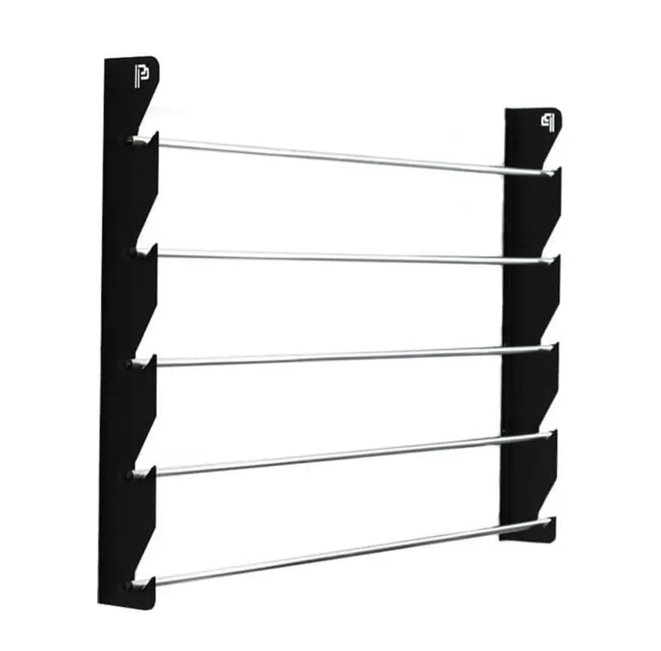 Poka Premium Equipment wieszak do składowania folii – Wysokiej jakości wieszak do składowania folii z gumowymi uszczelkami do ochrony krawędzi. Możliwość powieszenia 5 rolek jednocześnie. Odpowiednie wgłębienia zapewniają zabezpieczenie rolki przed wypadnięciem. Umożliwia przechowywanie rolek folii o szerokości 152 cm. Brak ostrych krawędzi dla maksymalnej ochrony.