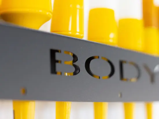 Funkcjonalny wieszak na pędzelki, szczotki oraz akcesoria pielęgnacji samochodu wraz z wyciętym laserowo napisem BODY.