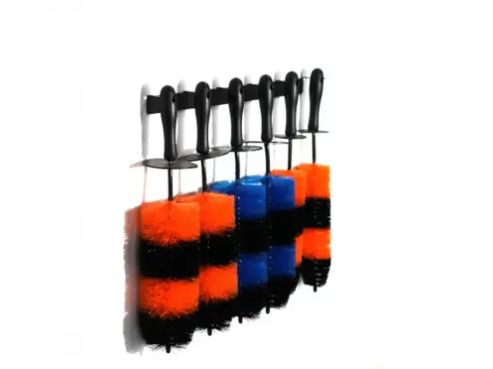 Wysokiej jakości, ergonomiczny i zgrabny uchwyt na szczotki. Uchwyt posiada miejsce na 6 szczotek. Zaprojektowany z myślą o efektywnym wykorzystaniu przestrzeni w pracy. Wykonany z 1,5 mm ocynkowanej blachy udźwignie szczotki do 0,5 kg. Wąskie ramiona uchwytu pasują do większości otworów w rączkach szczotek. Odległość ramienia od ściany to 5cm. Finalnie pokryty proszkowym wykończeniem, zarówno wewnątrz jak i zewnątrz, aby zapewnić dodatkową warstwę ochronną przed utlenianiem.