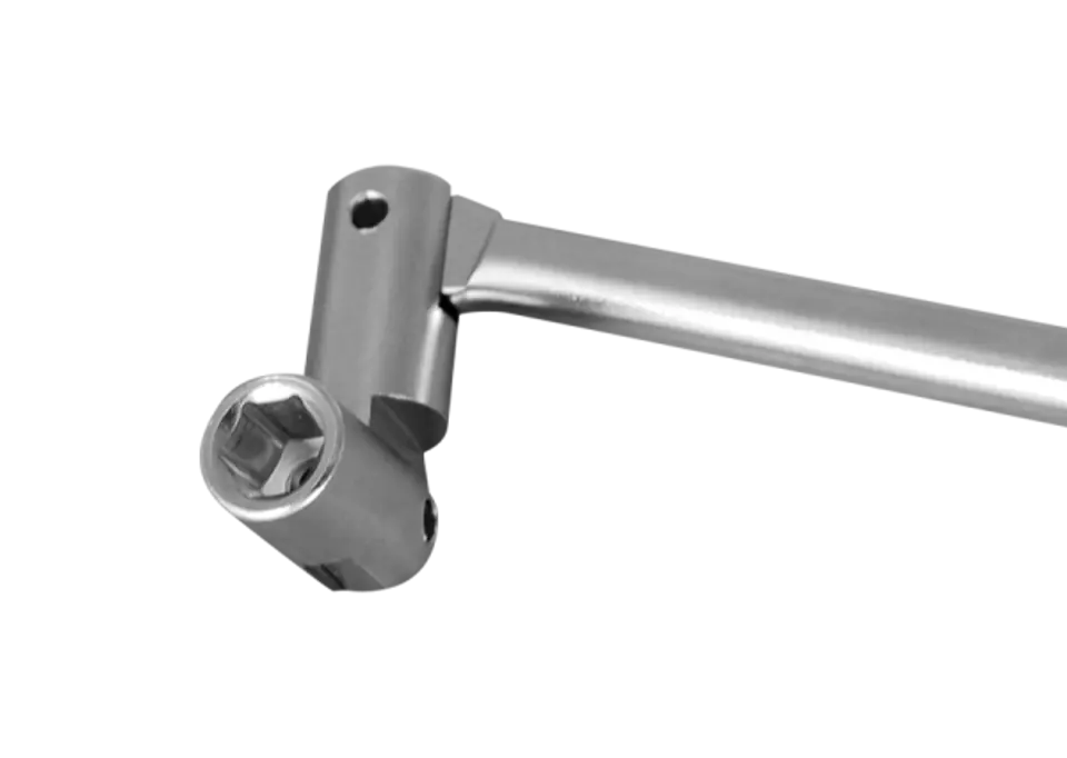 Pokrętło przegubowe typu "T z nasadką 10 mm King Tony. Całkowita długość pokrętła 396 mm. Wykonane ze stali chromowo-wanadowej pokrętło pozwala na pracę z nasadką pod dowolnym kątem (posiada podwójne przeguby w głowicy)"
