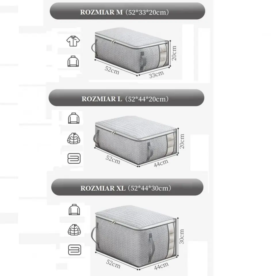 Pokrowiec, organizer, kufer do przechowywania- Rozmiar L To idealny gadżet w Twoim domu. Torba świetnie sprawdzi się do przechowywania pościeli, ciuchów, ręczników, koców czy innych produktów, które nie ma gdzie zmieścić. Zmiana garderoby na nową porę roku? Nic trudnego! Schowaj część rzeczy do torby i zrób miejsce na nowe.Pokrowiec z łatwością przechowasz w szafie, łóżku, na strychu itp. Specyfikacja: Wymiary:ok. 55 x 44 x 20 cmKolor:jodełka biało-czarnyMateriał: Poliester, Brezent bawełnianyWaga: Wymiary produktu przed rozłożeniem: Porządki w szafie nigdy nie były tak proste i przyjemne!