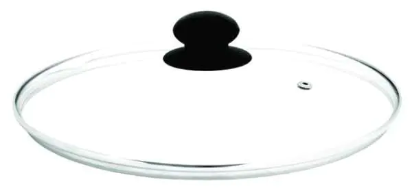 Pokrywa szklana 12 cm Pokrywa wykonana z bezbarwnego, żaroodpornego szkła. Obręcz i rant wykonane ze stali nierdzewnej. Rączka pokrywy wykonana z tworzywa sztucznego. średnica: 12 cm
