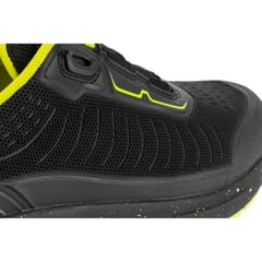 - MATERIAŁ: Wierzch: TPU o podwyższonej odporności na przecięcie, zewnętrzna konstrukcja obuwia w części przedniej, bocznej i tylnej dodatkowo wzmocniona tworzywem TPU. Obuwie posiada system szybkiego wiązania SPINON (pokrętło ze stalową linką) zapewniający precyzyjną regulację i idealne dopasowanie. Podszewka: dzianina siatkowa. Wyściółka: wymienna, 1,2 cm grubości w części pięty, miękka i elastyczna. Podeszwa: guma nitrylowa o podwyższonych właściwościach antypoślizgowych (podłoże z płytek ceramicznych pokryte gliceryną), odporna na olej napędowy oraz działanie wysokiej temperatury w krótkotrwałym kontakcie (do 300°C/1min.), nowoczesne urzeźbienie podeszwy odprowadza najdrobniejsze ciekłe zanieczyszczenia oraz zwiększa antypoślizgowość i przyczepność do podłoża