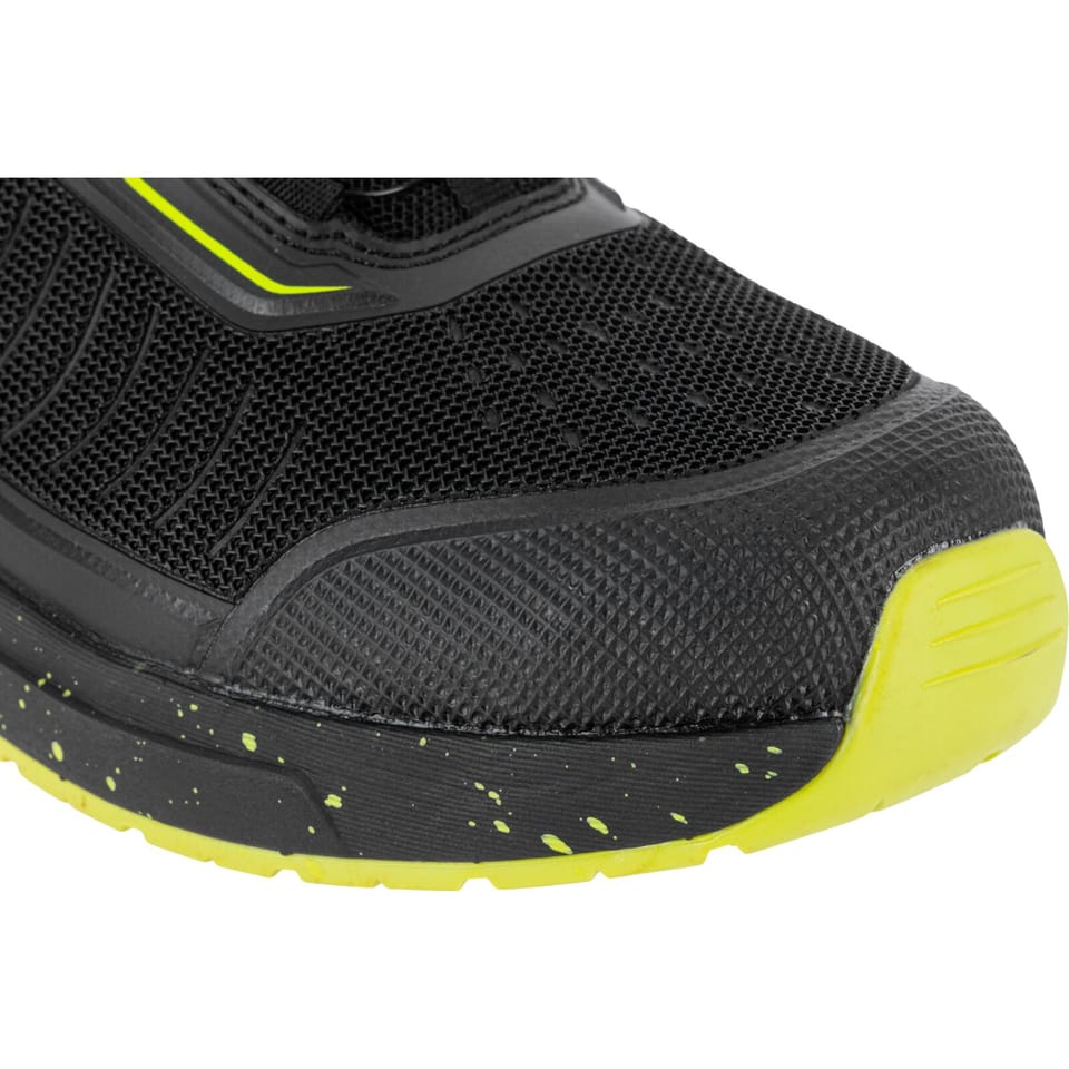 - MATERIAŁ: Wierzch: TPU o podwyższonej odporności na przecięcie, zewnętrzna konstrukcja obuwia w części przedniej, bocznej i tylnej dodatkowo wzmocniona tworzywem TPU. Obuwie posiada system szybkiego wiązania SPINON (pokrętło ze stalową linką) zapewniający precyzyjną regulację i idealne dopasowanie. Podszewka: dzianina siatkowa. Wyściółka: wymienna, 1,2 cm grubości w części pięty, miękka i elastyczna. Podeszwa: guma nitrylowa o podwyższonych właściwościach antypoślizgowych (podłoże z płytek ceramicznych pokryte gliceryną), odporna na olej napędowy oraz działanie wysokiej temperatury w krótkotrwałym kontakcie (do 300°C/1min.), nowoczesne urzeźbienie podeszwy odprowadza najdrobniejsze ciekłe zanieczyszczenia oraz zwiększa antypoślizgowość i przyczepność do podłoża