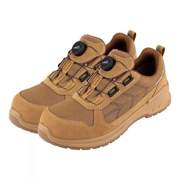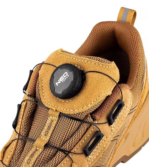 Półbuty robocze S1 SR FO, linkowe wiązanie z pokrętłem,82-174 marki NEO TOOLS to obuwie, które wyposażone zostało w linkowe wiązanie z pokrętłem, umożliwiające szybkie oraz precyzyjne dopasowanie.