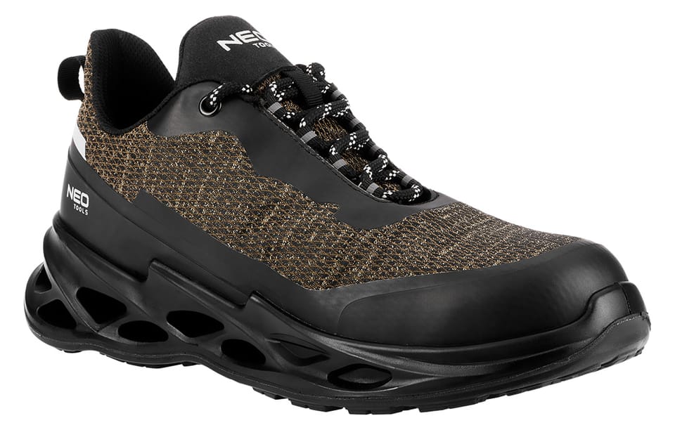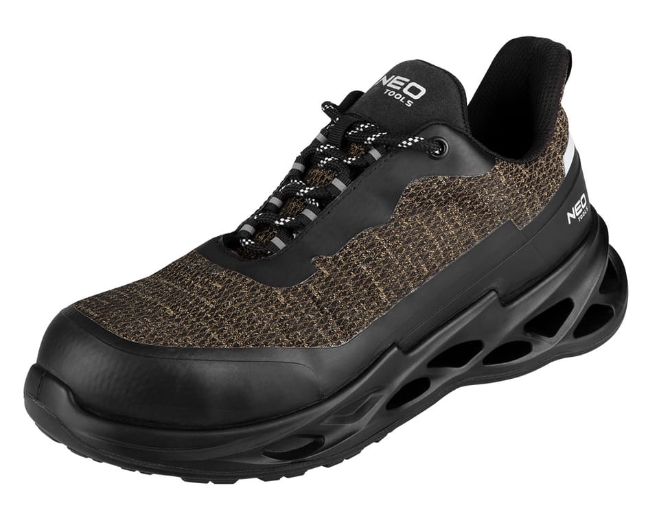 Półbuty robocze S1 SR FO, stalowy podnosek, odblaskowe, cholewka: wytrzymały materiał tekstylny i otok przy podeszwie z TPU, wyściółka: materiał tekstylny, podeszwa: PU/PU, wkładka: pianka HI-POLY, but wykonany w kategorii S1 SR FO (SR - odporność na poślizg na podłożu z płytki ceramicznej pokrytej glicerolem, FO odporność podeszwy buta na węglowodory takie jak olej, benzyna itp.), podnosek zapewniający ochronę przed uderzeniami z energią równą 200J, właściwości antystatyczne, cholewka wykonana z wytrzymałego materiału tekstylnego oraz TPU w miejscach narażonych na przetarcia, elementy odblaskowe poprawiają widoczność, nowoczesny i sportowy design, Certyfikat CE, rozmiar 44