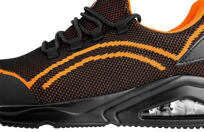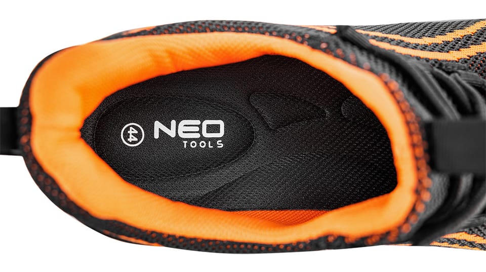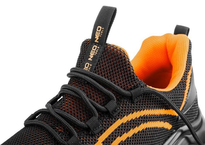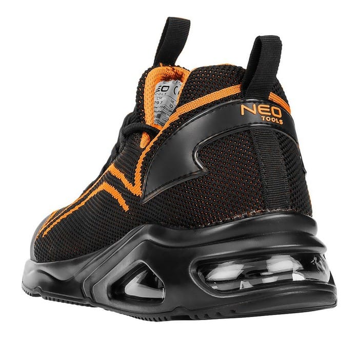 Półbuty robocze S1 SR Neo Air, stalowy podnosek, pomarańczowe, cholewka: materiał tekstylny tkany z jednej nici, wyściółka: materiał tekstylny, podeszwa: PU z poduszką powietrzną, wkładka: pianka HI-POLY z miękkimi strefami, but wykonany w kategorii S1 SR (SR - odporność na poślizg na podłożu z płytki ceramicznej pokrytej glicerolem), podnosek zapewniający ochronę przed uderzeniami z energią równą 200J, właściwości antystatyczne, przewiewna cholewka wykonana z materiału tkanego z jednej nici co zapewnia lekką konstrukcję i idealne dopasowanie do stopy, podeszwa z poduszką powietrzną oraz wkładki z miękkimi strefami podnoszą komfort noszenia, nosek buta oblany tworzywem TPU co zwiększa wytrzymałość na przetarcia, lekkie półbuty o nowoczesnym sportowym wyglądzie, Certyfikat CE, zgodność z normą EN ISO 20345, rozmiar 43