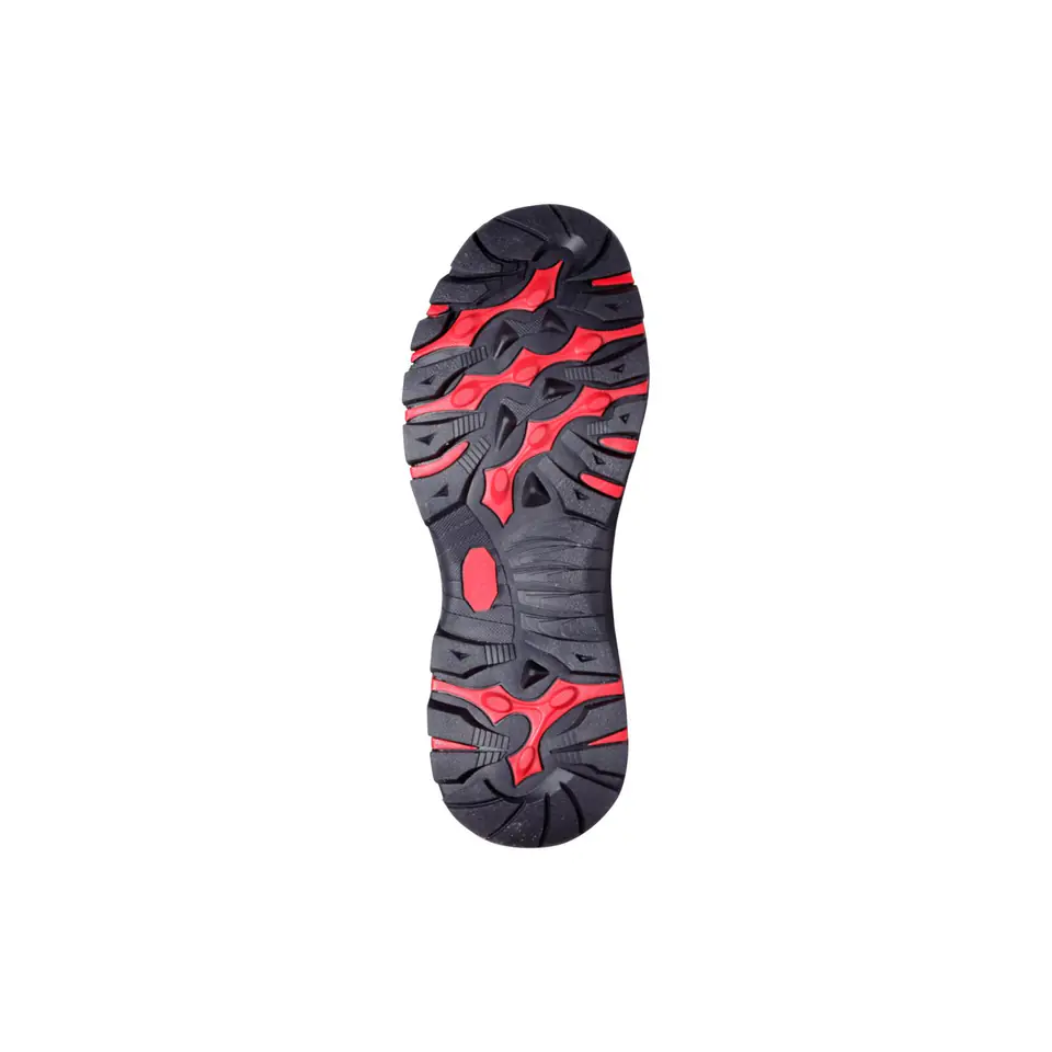 - MATERIAŁ: Wierzch: skóra zamszowa, zewnętrzna konstrukcja obuwia w części przedniej i tylnej wzmocniona tworzywem TPR, wysokiej jakości metalowe szlufki. Podszewka: dzianina siatkowa. Wyściółka: wymienna. Podeszwa: gumowa, odporna na olej napędowy, głęboki bieżnik zwiększa przyczepność do podłoża