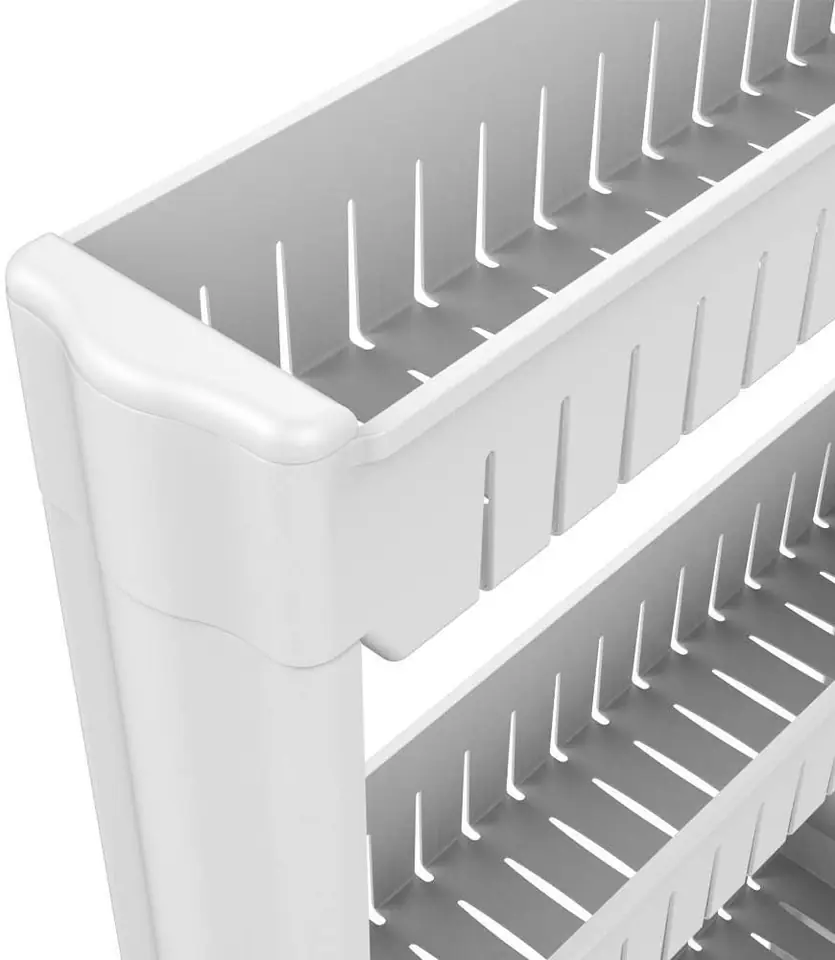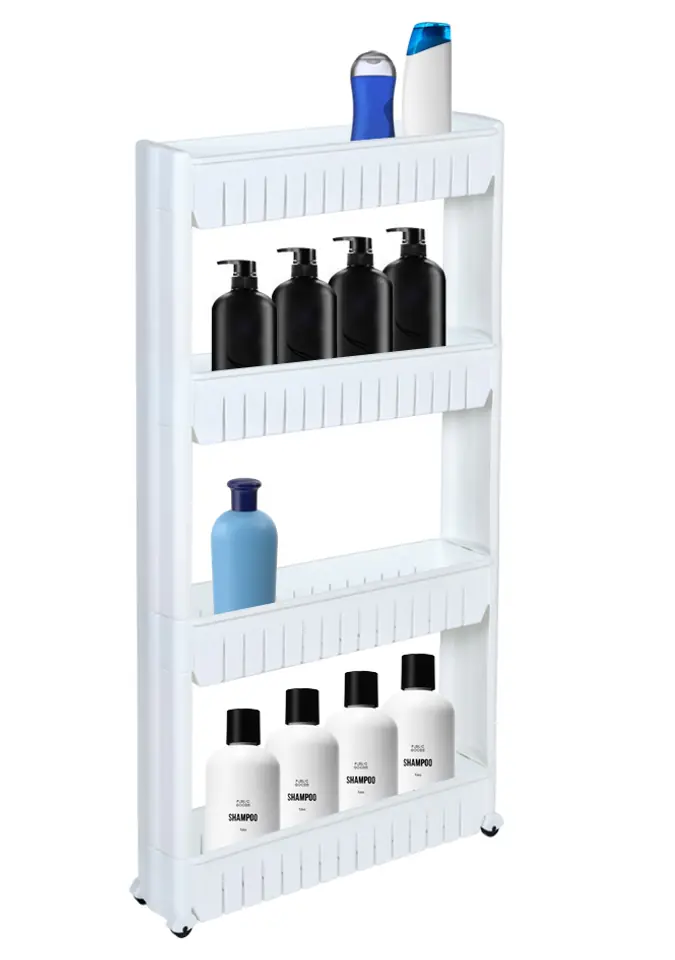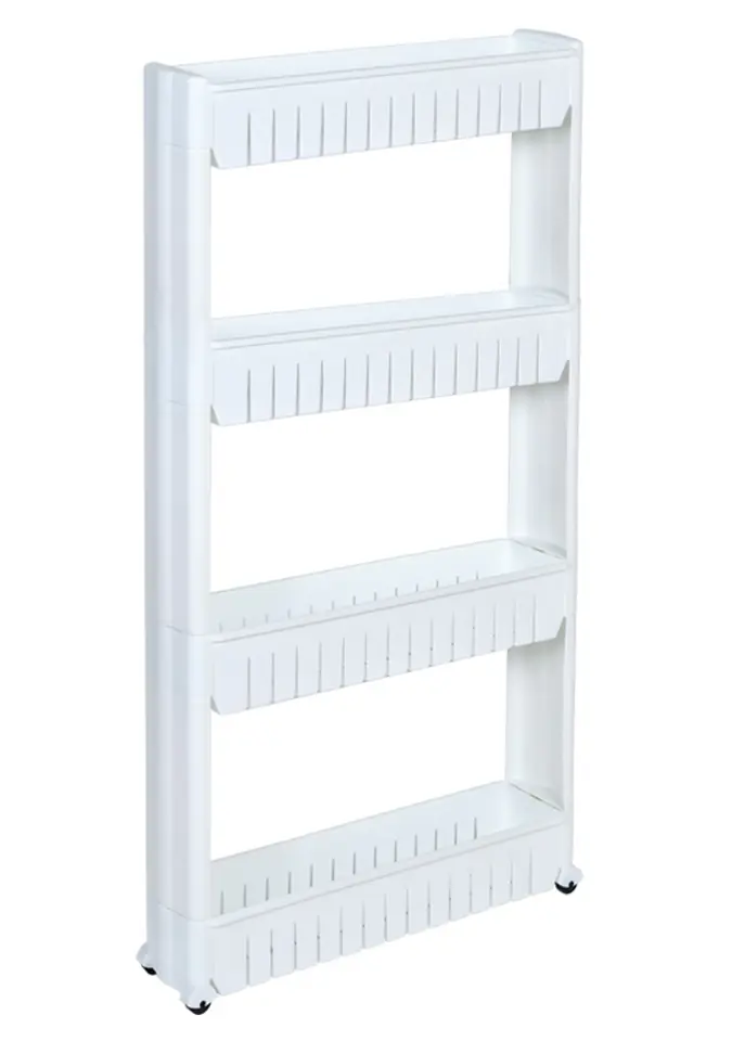 Półka kuchenna łazienkowa biała 4 poziomy OsmeraPrzeznaczenie: kuchnia, łazienka | Kolory: biały Mobilna szafka idealna do wąskich przestrzeni, takich jak kuchnia czy łazienka. Jej modułowa konstrukcja wykonana z wytrzymałego tworzywa umożliwia łatwe dopasowanie do potrzeb – półki można dodawać lub odejmować. Dzięki kompaktowym wymiarom doskonale sprawdzi się między szafką a lodówką, pralką czy w innych trudno dostępnych miejscach. Regał kuchenny świetnie nadaje się do przechowywania przypraw, akcesoriów kuchennych, kosmetyków, środków czystości i wielu innych niezbędnych rzeczy. Mobilność zapewniają cztery kółka, dzięki którym szafka łazienkowa na kółkach łatwo przemieszcza się tam, gdzie jest potrzebna. Cechy produktuwykonana z mocnego tworzywa sztucznegokółka ułatwiające przesuwanie4 pojemne poziomymodułowa konstrukcja (można dodawać lub zdejmować półki)Wiele zastosowań np. w kuchni, łazienceWymiary produktuwysokość 101,5 cmszerokość 54 cmgłębokość 12,5 cm Przykładowa aranżacja. Produkt do samodzielnego montażu.Informacje dodatkowePrzedstawione kolory należy traktować poglądowo - mogą odbiegać od rzeczywistych ze względu na różne ustawienia monitorów oraz proces obróbki zdjęć. Rzeczywiste wymiary mogą się różnić od podanych wyżej. Tolerancja błędów może wynosić +/- 5%. Marka:GockowiakKod EAN:5902340320655Kolor:białyWysokość: 101,5 cmSzerokość:54 cmGłębokość:12,5 cmIlość półek:cztery