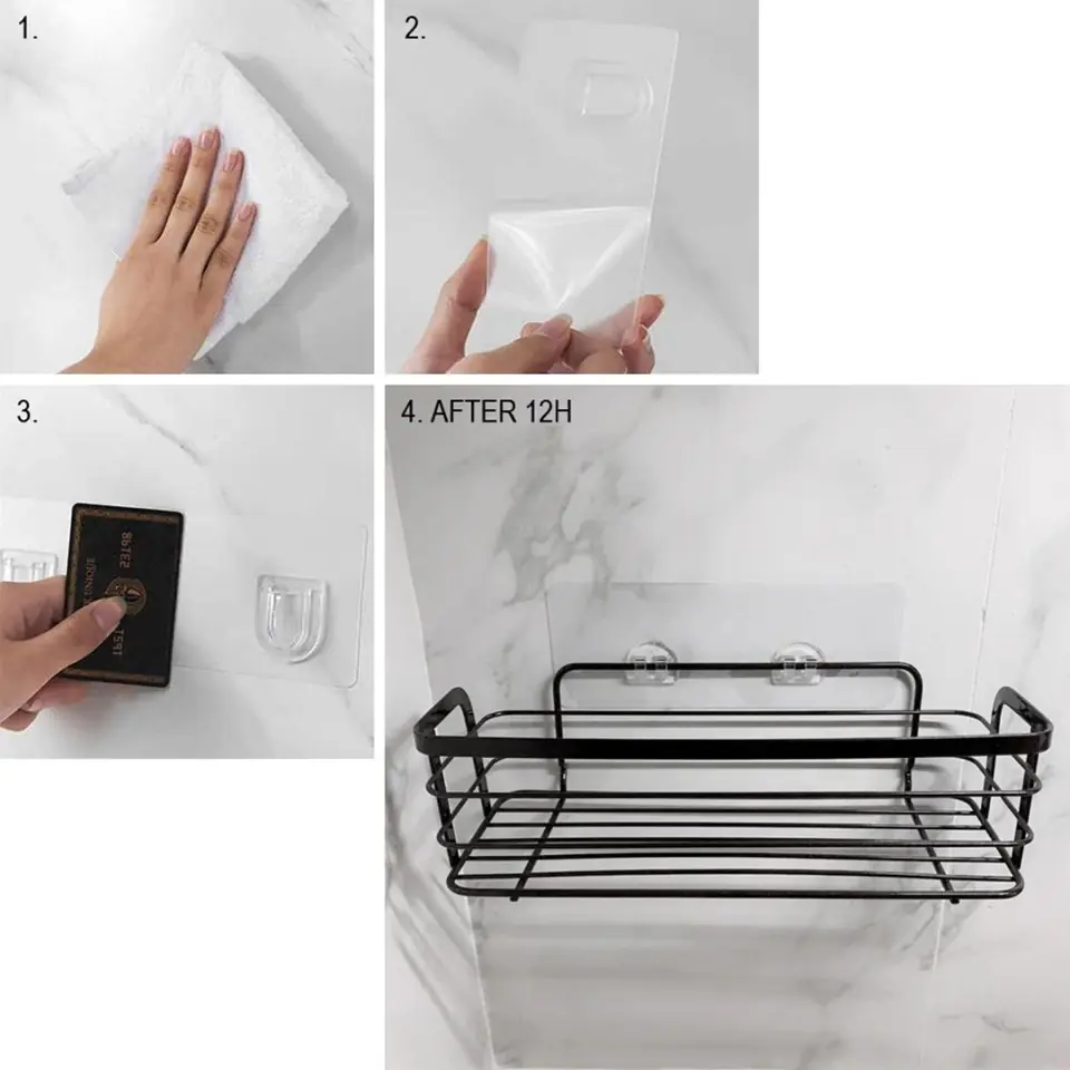 Półka łazienkowa przyklejana za pomocą mocnej taśmy. Idealna do montażu pod prysznicem tak aby żel pod prysznic, szampon, mydło, szczotka czy gąbka były zawsze pod ręką.