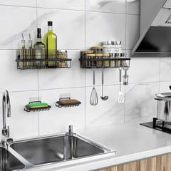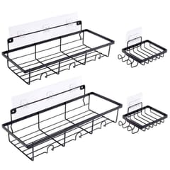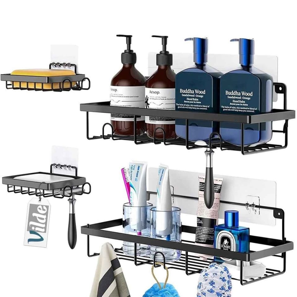 Zestaw czterech półek łazienkowych w trzech rozmiarach. Wykonane z metalu w czarnym kolorze. Idealne do montażu pod prysznicem tak, aby kosmetyki były zawsze pod ręką. Swietnie sprawdzą się również w kuchni jako półki na przyprawy i akcesoria.
