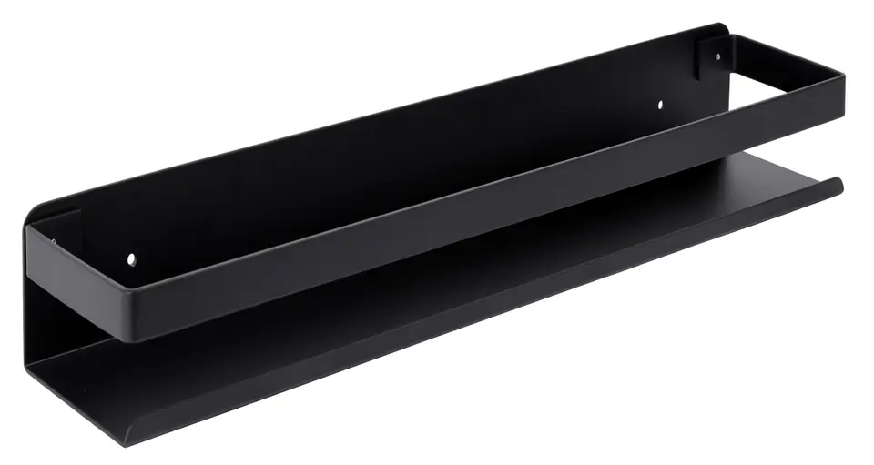 Półka loftowa łazienkowa Megara 30 cm czarnaPrzeznaczenie: łazienka, kuchnia | Kolory: czarny Ponadczasowa, praktyczna i po prostu piękna - półka Megara pomoże uporządkować każdą przestrzeń. Doskonale sprawdzi się w łazience jako półka na kosmetyki. Można ją zamontować także w kuchni, jako przybornik na przyprawy, wyeksponuje eleganckie słoje z makaronem, cukrem, kawą itp. Dzięki szerokości 30 cm zmieści niemal wszystkie akcesoria i pozwoli zaprowadzić porządek w pomieszczeniu. Wykonano ją ze stali nierdzewnej i pomalowano proszkowo na czarny mat. Dzięki temu pozostaje wodoodporna. Polecamy szczególnie do wnętrz loftowych, rustykalnych i glamour. Cechy produktuwykonana ze stali nierdzewnejkolor: matowa czerństaranne wykończeniełatwy montaż [kołki w zestawie]uniwersalne zastosowanieWymiary produktuDługość: 30 cmGłębokość: 10 cmWysokość: 6 cmRozstaw śrub: 21,5 cm Informacje dodatkowePrzedstawione kolory należy traktować poglądowo - mogą odbiegać od rzeczywistych ze względu na różne ustawienia monitorów oraz proces obróbki zdjęć. Rzeczywiste wymiary mogą się różnić od podanych wyżej. Tolerancja błędów może wynosić +/- 5%.Marka:GockowiakKod EAN:323427MGKolor:czarnyWysokość: 6 cmSzerokość:30 cmGłębokość:10 cmMateriał:aluminium