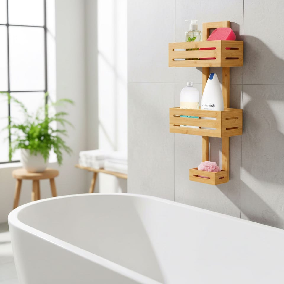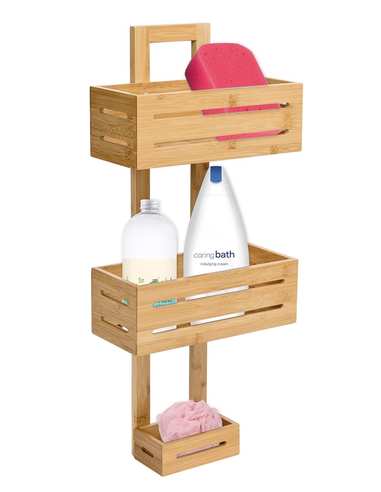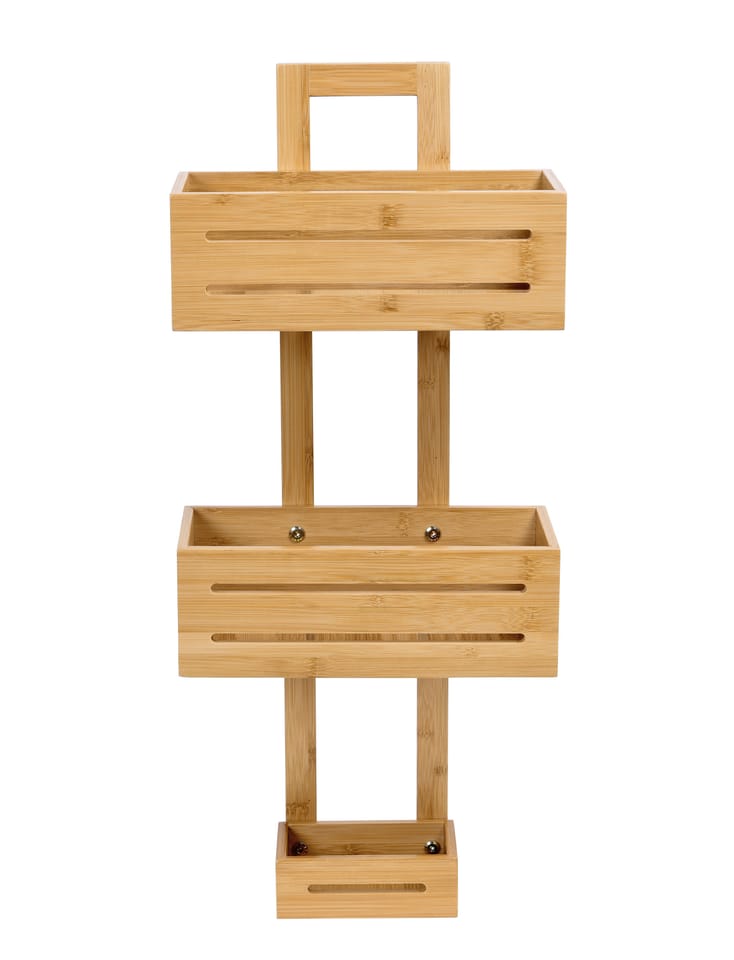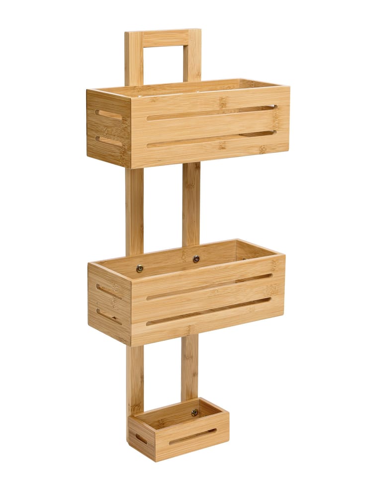 Półka bambusowa 3 poziomy ManilaPrzeznaczenie: organizer na kosmetyki | Kolory: naturalny Dzięki wiszącej półce Manila wykonanej z bambusa stworzysz przestrzeń do przechowywania w swojej łazience. Organizer posiada łącznie 3 kosze. Dwie górne mają miejsce na szampon, żel pod prysznic i inne większe butelki. Dolna komora jest mniejsza i nadaje się na mydło lub maszynki do golenia. Dzięki trzem półkom masz wszystko pod ręką. Wystarczy zawiesić ją na haczyku lub dwóch śrubach. Naturalny bambus ładnie dopasuje się do Twojego wnętrza. Cechy produktuPraktyczna półka prysznicowa z 3 koszami do szamponu, mydła, gąbki, golarki i wielu innych. Masz wszystko, co jest potrzebne zawsze pod rękąPółka wisząca z dwiema dużymi półkami na górze i małą półką na dole – wszystkie półki są wyposażone w ramę (10 cm lub 5 cm wysokości), aby nic się nie przewróciło lub nie spadało.Regał prysznicowy wystarczy zawiesić na haku lub śrubie.Również jako regał wiszący w kuchni świetnie się prezentuje i jest tam praktycznym elementem przyciągającym wzrok.Regał do samodzielnego montażu.Wymiary produktuWysokość całkowita 65 cmSzerokość całkowita 28 cmGłębokość 13,5 cmGrubość ścianki koszyka: 8 mm Informacje dodatkowePrzedstawione kolory należy traktować poglądowo - mogą odbiegać od rzeczywistych ze względu na różne ustawienia monitorów oraz proces obróbki zdjęć. Rzeczywiste wymiary mogą się różnić od podanych wyżej. Tolerancja błędów może wynosić +/- 5%. Marka:GockowiakKod produktu:320709MGKolor:naturalnyWysokość całkowita: 65 cmSzerokość całkowita:28 cmGłębokość13,5 cmMateriały:bambus