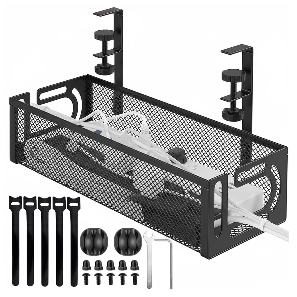 Półka na kable prowadnica na przewody VALIA⭐️ Półka wykonana ze stali węglowej⭐️ Bezinwazyjny montaż na zaciski⭐️ Pasuje do większości biurek i blatów⭐️ Dwa samoprzylepne uchwyty na przewody oraz 5 taśm na rzep w zestawie⭐️ Zakup od producenta✨Valia – półka na kable pod biurko✨Masz dość plątaniny przewodów pod biurkiem? Półka na kable Valia to praktyczny sposób na utrzymanie porządku i estetyki w miejscu pracy. Dzięki niej zyskasz więcej wolnej przestrzeni, uporządkujesz kable i unikniesz chaosu oraz poprawisz wygodę korzystania z urządzeń elektronicznych. Montaż półki jest szybki, prosty i bezinwazyjny – nie wymaga wiercenia. Solidna, stalowa konstrukcja zapewnia trwałość, a dodatkowe akcesoria w zestawie ułatwiają dopasowanie organizacji przewodów dokładnie do Twoich potrzeb.Cechy:Materiał: Stal węglowaKompatybilność blatów: Pasuje do blatów o grubości do 50 mmMontaż: Bezinwazyjny, na zaciskiW zestawie: Półka, 2 uchwyty samoprzylepne na kable, 5 taśm na rzep, zestaw montażowyKolor: CzarnyWaga: 0,58 kgWymiary:Maksymalna wysokość półki z zaciskami: 19,5 cmWysokość półki: 7 cmSzerokość: 40 cmGłębokość: 12 cm Informacje dodatkowePrzedstawione kolory należy traktować poglądowo - mogą odbiegać od rzeczywistych ze względu na różne ustawienia monitorów oraz proces obróbki zdjęć. Rzeczywiste wymiary mogą się różnić od podanych wyżej. Tolerancja błędów może wynosić +/- 5%.Marka:GockowiakKod EAN:5902340332061Kolor stelaża:czarnyWysokość półki z zaciskami:19,5 cmSzerokość półki:40 cmMontaż:bezinwazyjny, na zaciski