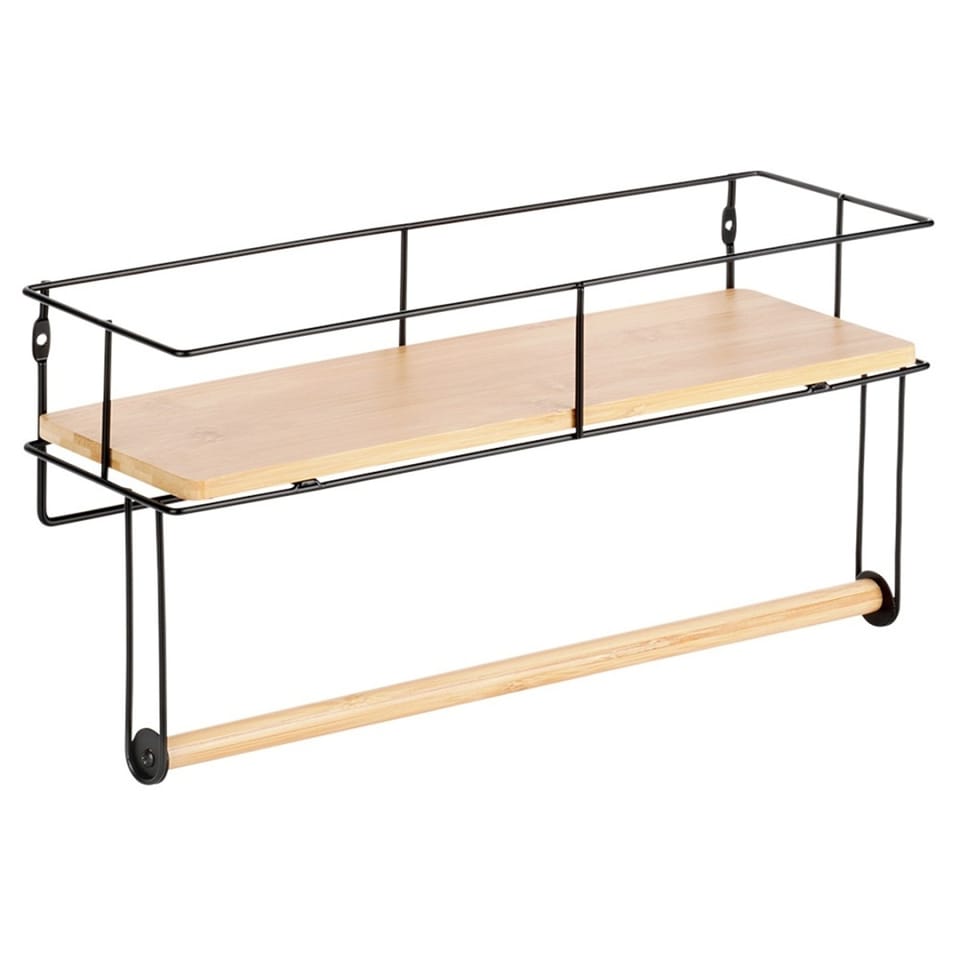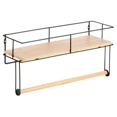 Ścienna, półka kuchenna z wieszakiem na ręczniki papierowe. Półka może posłużyć do przechowywania pojemników kuchennych, słoiczków z przyprawami, filiżanek czy kubków.