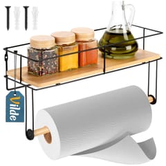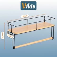 Wieszak kuchenny na ręcznik papierowy z półką, na której możemy przechowywać np. pojemniki z przyprawami. Oryginalny industrialny design. W zestawie śrubki mocujące. Oryginalny produkt marki Vilde. Wyprodukowano zgodnie z europejskimi standardami.