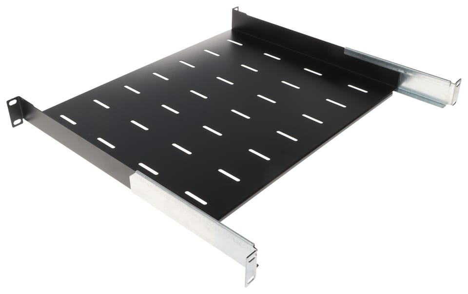 Regulowana półka do szafy RACK 19", przeznaczona do montażu urządzeń nie posiadających obudowy przystosowanej do montażu w szafach RACK