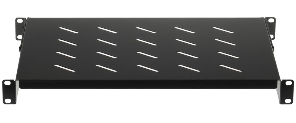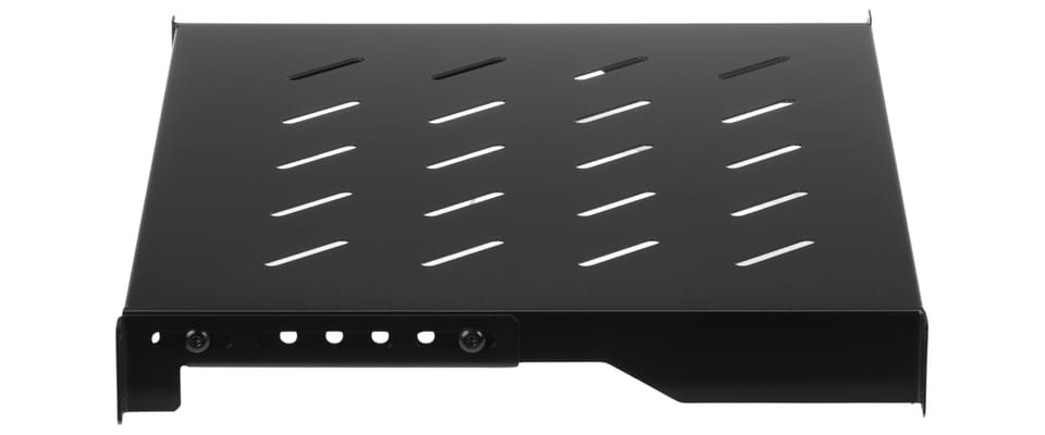 Regulowana półka do szafy RACK 19", przeznaczona do montażu urządzeń nie posiadających obudowy przystosowanej do montażu w szafach RACK