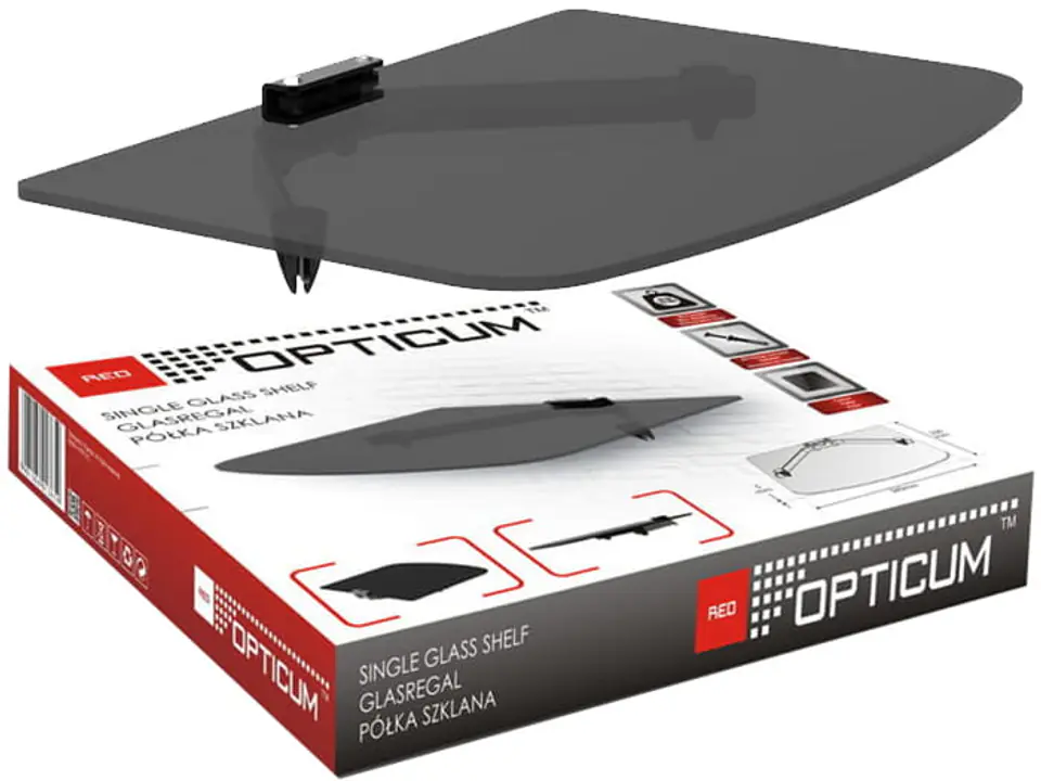 Półka wykonana jest z części stalowych, estetycznego tworzywa sztucznego oraz hartowanego szkła.