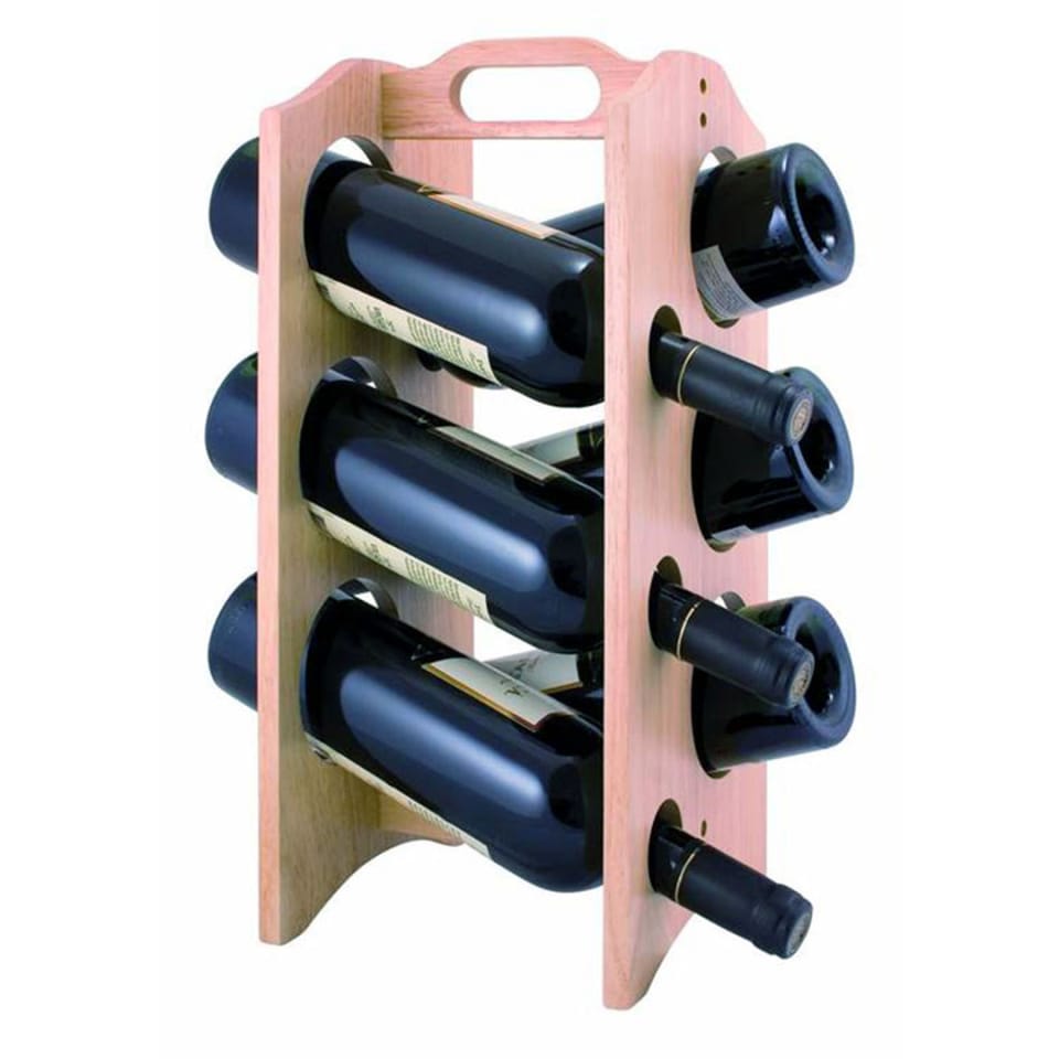 Stojak na wino wykonany z drewna kauczukowego w naturalnym kolorze. Pomieści 6 butelek ulubionego trunku. Posiada wygodną rączkę do przenoszenia. Stojak na wino pomaga w organizacji kolekcji butelek, umożliwiając ich uporządkowane przechowywanie. Dzięki niemu butelki są łatwo dostępne. Ciekawy pomysł na praktyczny prezent np. z okazji parapetówki lub dla miłośników win.