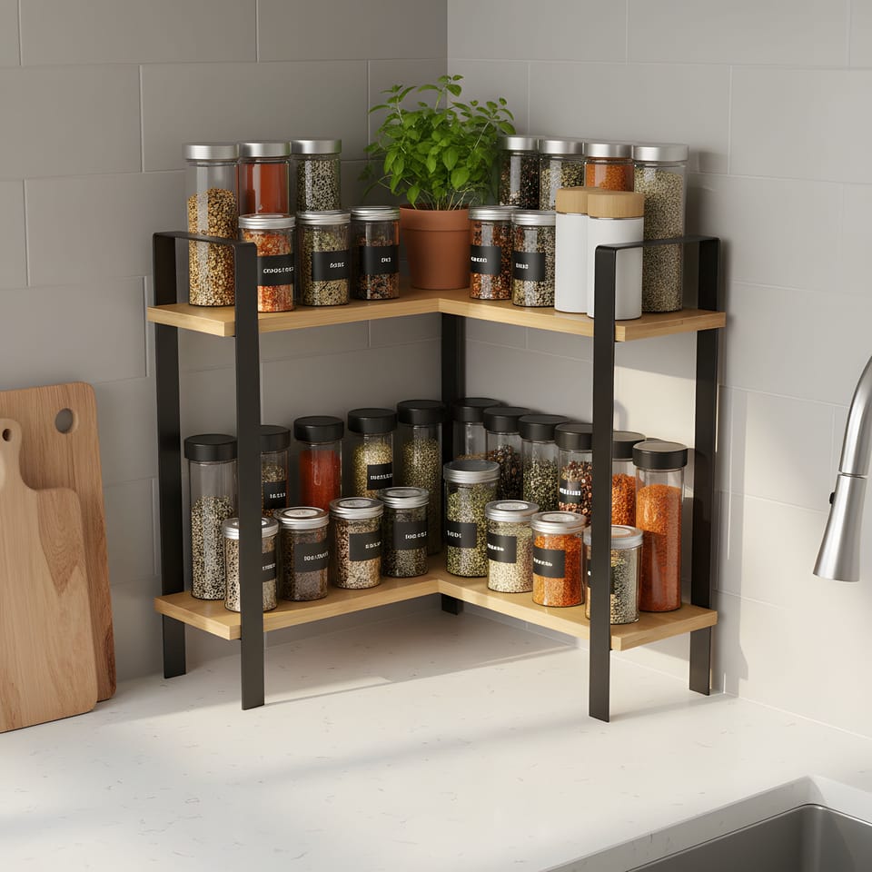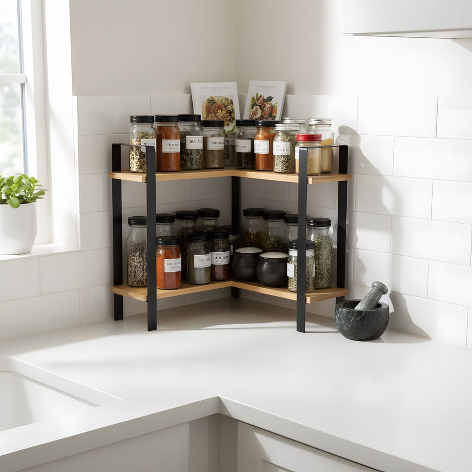 Półki na przyprawy SARITA bambusowe⭐Materiał: drewno bambusowe i metal ⭐2 poziomy ⭐Uniwersalne zastosowanie ♨️ Półki na przyprawy Sarita – idealna do każdej kuchni!♨️Regał Sarita to perfekcyjne rozwiązanie dla miłośników funkcjonalności i elegancji w kuchni. Dzięki narożnej konstrukcji skutecznie wykorzystuje dostępne miejsce, co czyni go idealnym wyborem do mniejszych przestrzeni. Wykonany z trwałej stali malowanej proszkowo oraz naturalnego drewna bambusowego, cechuje się wyjątkową estetyką i dbałością o każdy detal. Matowa, czarna metalowa konstrukcja nadaje regałowi nowoczesny, loftowy wygląd, a nóżki z ochronnymi podkładkami zapewniają stabilność i ochronę powierzchni, na której stoi.✅ Optymalne wykorzystanie przestrzeni: Narożna konstrukcja regału Sarita pozwala na maksymalne wykorzystanie dostępnej przestrzeni w małych kuchniach.✅ Wysokiej jakości materiały: Stal malowana proszkowo gwarantuje wyjątkową trwałość i odporność, a półki z bambusa dodają ciepłego, naturalnego charakteru.✅ Nowoczesny design: Matowy czarny kolor oraz współczesny wygląd sprawiają, że regał doskonale pasuje do wnętrz w stylu loftowym i nowoczesnym.✅ Praktyczność i wygoda: Dwie przestronne półki umożliwiają wygodne przechowywanie różnorodnych przypraw i akcesoriów kuchennych.✅ Stabilność i ochrona powierzchni: Nóżki z podkładkami zabezpieczają powierzchnię przed zarysowaniami i uszkodzeniami, zapewniając stabilność regału.Wybierz regał na przyprawy Sarita, aby wnieść funkcjonalność i styl do swojej kuchni! ✔️ Specyfikacja:materiał konstrukcji: stal malowana proszkowomateriał półek: drewno bambusoweantypoślizgowe nóżki: takprzeznaczenie: kuchniastyl: loftowy, nowoczesnywaga: 1,16 kgMaksymalne obciążenie 3 kg na półkę✔️ Wymiary:Wysokość: 33,5 cmSzerokość: 29,5 cmGłębokość: 29,5 cmOdległość między półkami: 20 cm UWAGA | Przedstawione kolory należy traktować poglądowo - mogą odbiegać od rzeczywistych ze względu na różne ustawienia monitorów oraz proces obróbki zdjęć • Rzeczywiste wymiary mogą się nieznacznie różnić od podanych w opisie. Tolerancja błędów może wynosić +/- 2 cm