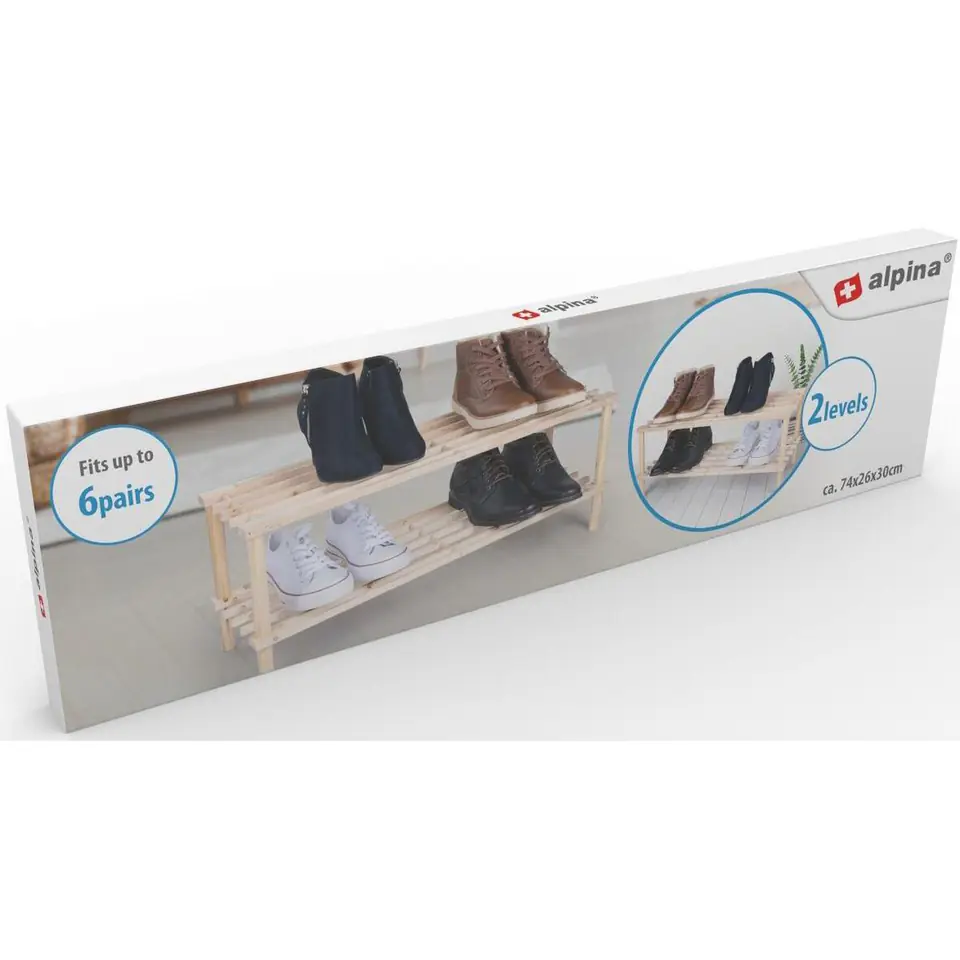 - Wymiary: 74 x 26 x 30 cm (dł. x gł. x wys.)Wysokość półek ok.: 17 cmIlość półek (poziomów): 2Materiały: drewno do lekkiej obróbki (możliwe drzazgi)Kolor: naturalne drewnoMarka: AlpinaWaga netto: 0,8 kgWaga brutto: 1,03 kgPrzeznaczenie: około 6 par butów (w zależności od rodzaju i rozmiaru)Wymiary opakowania (karton): 27 x 3,5 x 75 cm (szer. x gr. x wys.)