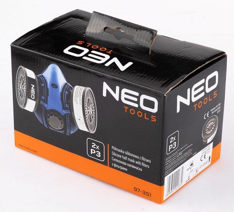 Półmaska silikonowa + 2x Filtr P3, 97-351 marki NEO TOOLS to zestaw obejmujący półmaskę silikonową 97-350 NEO TOOLS oraz dwie sztuki filtrów P3, 97-361 NEO TOOLS.