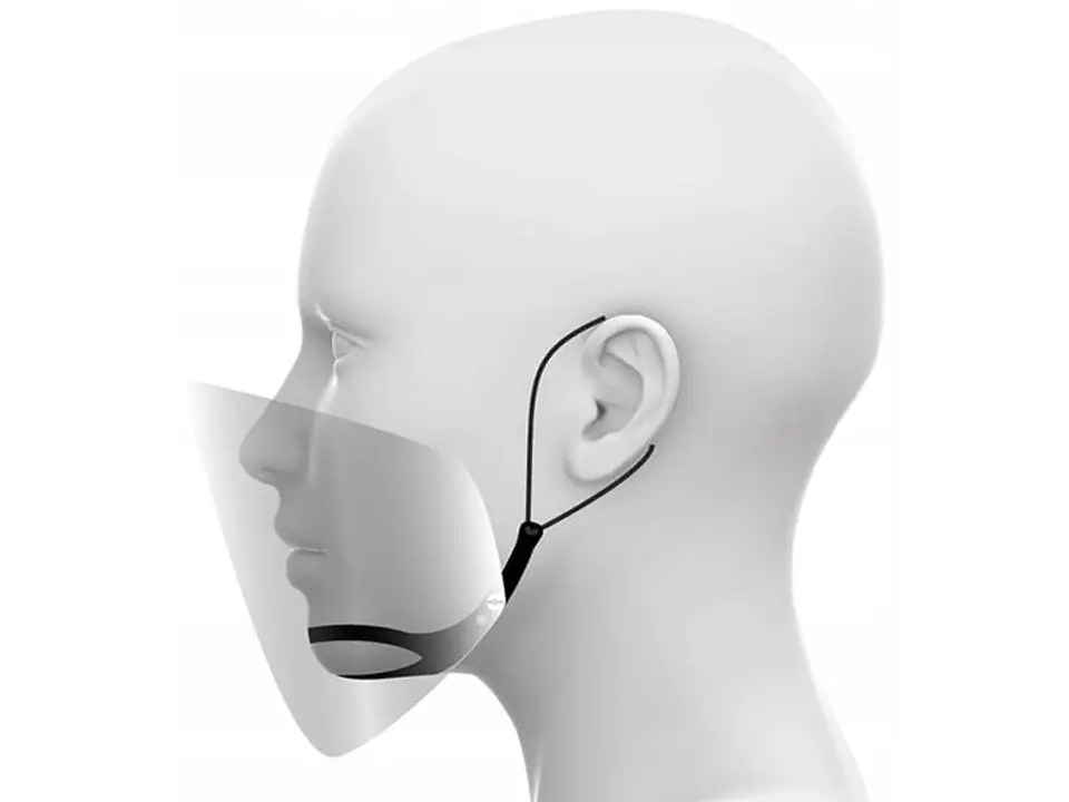 Dwie wysokiej jakości półprzyłbice w formie niezwykle wygodnej i lekkiej maski, której zadaniem jest zmniejszenie ryzyka kontaktu osób postronnych z różnego rodzaju zarazkami, bakteriami i wirusami wydobywającymi się podczas kichania czy kaszlu. Kształt maski w żaden sposób nie ogranicza wzroku oraz pozwala na bardzo swobodne oddychanie, ponieważ nie przylega bezpośrednio do nosa i ust. W zestawie znajdują się dwie maski, a mniejsza z nich jest idealnie dostosowana do użytku także przez dzieci.