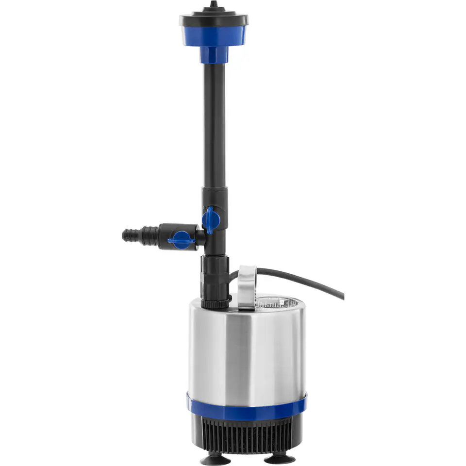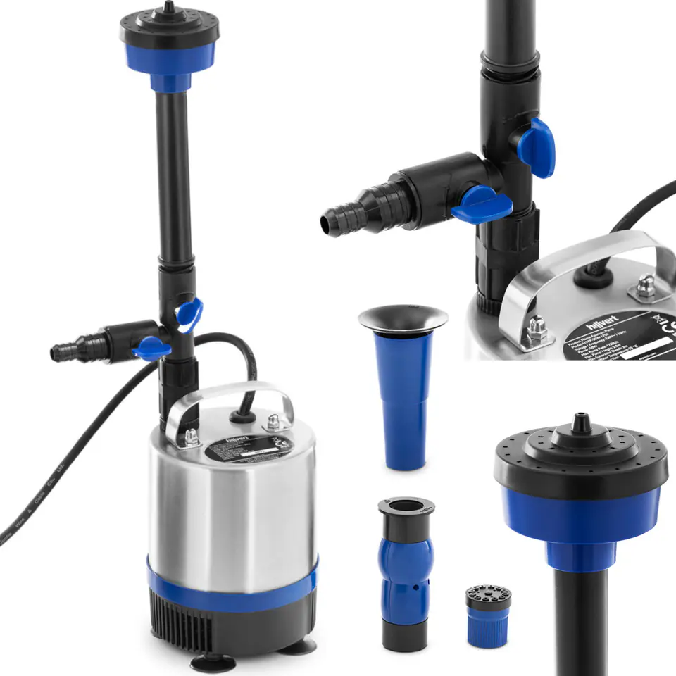 Pompa fontannowa marki Hillvert pozwala stworzyć 4 różne rodzaje fontanny w stawach, oczkach wodnych czy basenach. Pompa wyposażona została w rurę wznośną, pozwalającą uzyskać efekt fontanny przy ciśnieniu 0,19 bar i z przepływem wody 1750 l/h. Maksymalna wysokość to 1,94 m. Urządzenie utrzymuje w ruchu wodę w basenach czy oczkach wodnych o pojemności do 2200 l. Zatapialna pompa fontannowa odznacza się głębokością tłoczenia do 3 m. Wykonana została z wytrzymałej stali nierdzewnej.