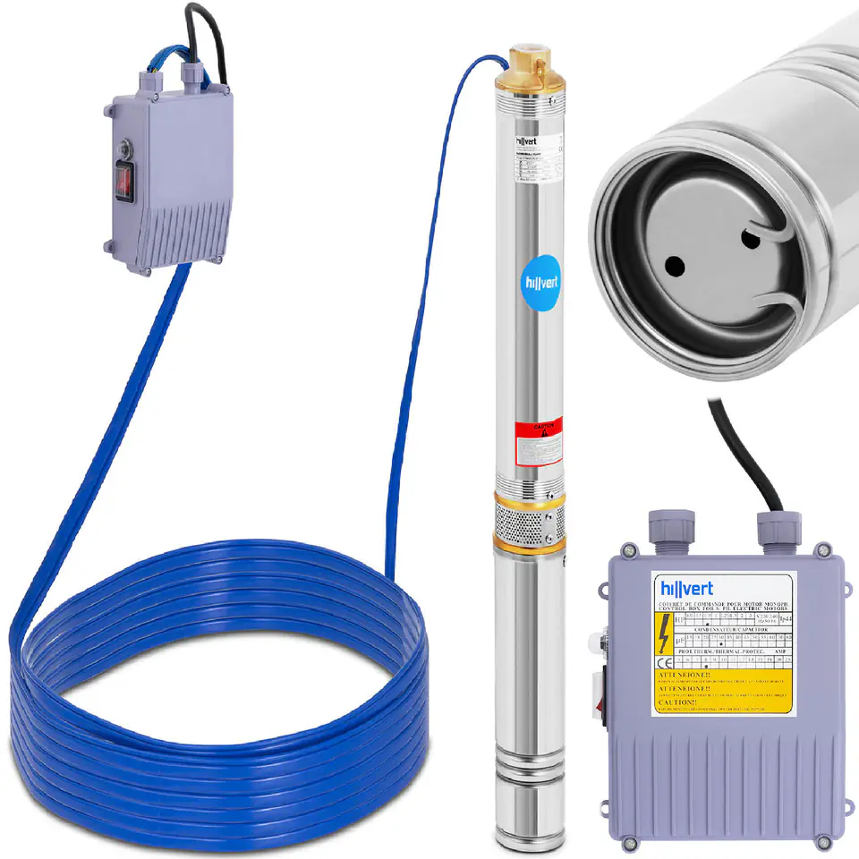 Kod producenta: 10090123Pompa głębinowa marki Hillvert sprawdzi się do pompowania czystej wody ze studni głębinowych czy zbiorników, przy podlewaniu roślin, napełnianiu oczek wodnych, a także jako zaopatrzenie w wodę gospodarstw domowych, instalacji wodociągowych lub nawadniających.Urządzenie posiada wydajny silnik o mocy 550 W, pracujący z prędkością 2850 obr./min. Hermetyczne zabezpieczenie skutecznie chroni przed dostaniem się wilgoci do środka i chroni go przed uszkodzeniem w czasie zanurzenia. Wysokość podnoszenia słupa wody na 80 m (licząc od poziomu wody do poziomu gruntu) pozwala na czerpanie nawet z głębokich studni. Przepływ pompy to 3000 l/h. Łatwa w obsłudze skrzynka sterownicza umożliwia zdalną pracę z pompą. Została wyposażona w wyłącznik nadprądowy zapobiegający uszkodzeniu urządzenia przy ewentualnych skokach napięcia. Obudowa urządzenia wykonana została ze stali nierdzewnej, odpornej na korozję i zacieki co sprawia, że jest idealna do stałego zanurzenia. Pompa posiada 20-metrowy przewód zasilający.Cechy produktu: