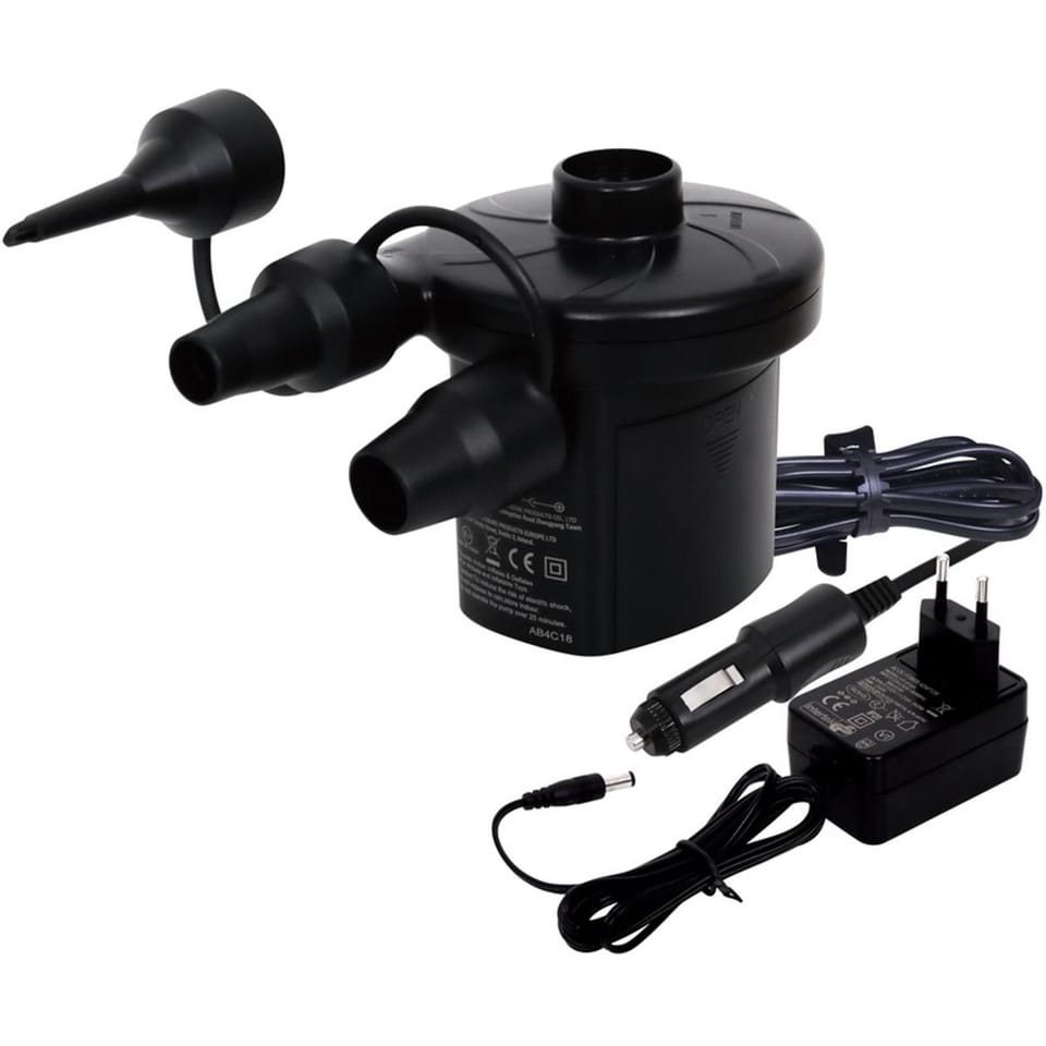- lekka, mała i poręcznaposiada wtyczkę DC 12V odpowiednią do gniazda zapalniczki samochodowejmoże być zasilana przez baterie (brak w zestawie) lub prąd zmienny AC 220-240Vdwukierunkowa, do pompowania i wypompowywania powietrzamaksymalne ciśnienie 2400Paw zestawie trzy wymienne końcówkiobudowa wykonana z mocnego materiału ABSdo użytku wewnątrz lub na zewnątrzzgodna z dyrektywą RoHS