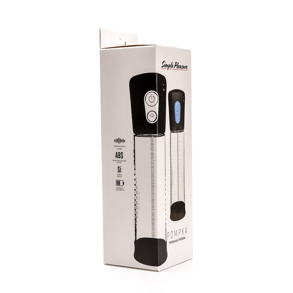 Automatyczna Pompa Powiększająca na BaterieMateriał: ABS / silikonowyTryb pracy: 3 prędkości, zasilanie bateryjneZasilanie: Wymaga 3 baterii AAARozmiar: Całkowita długość (z kontrolerem): 30 cm, długość użytkowa: 20 cmOpis: W pełni automatyczna pompka próżniowa z trzema trybami prędkości. Powietrze jest usuwane z cylindra za pomocą elektrycznego silnika, którego moc można regulować górnym przyciskiem. Dolny przycisk służy do obniżania ciśnienia w cylindrze.Zapewnia wygodę, precyzję i łatwość obsługi dzięki funkcji zasilania bateryjnego. Nowoczesne rozwiązanie dla mężczyzn poszukujących najwyższego komfortu i jakości.