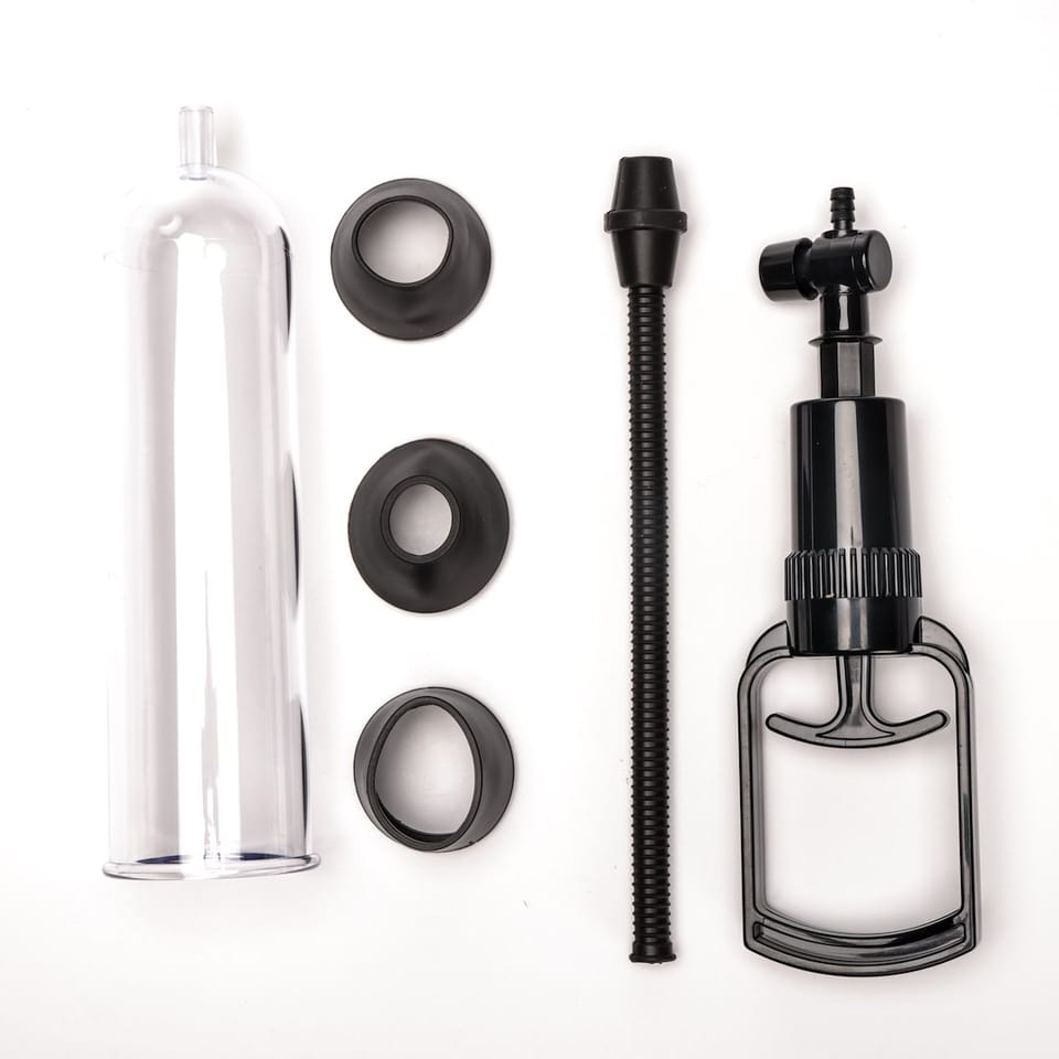 Ręczna Pompka PowiększającaMateriał: ABS i silikonRozmiar: Całkowita długość: 20,5 cm, długość użytkowa: 18,5 cm, średnica: Ø 58 mmOpis: Ręczna pompka próżniowa o kompaktowym rozmiarze, idealna dla mężczyzn ceniących wygodę i funkcjonalność. Stworzona z wytrzymałych materiałów dla optymalnych rezultatów.Model ten posiada zawór zwrotny regulujący ciśnienie wewnatrz cylindra. Dodatkowo do zestawu dołączone są 3 uszczelki w róznych rozmiarach.