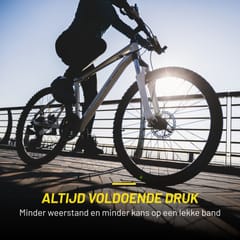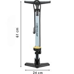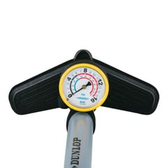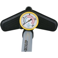 Pompka posiada wbudowany manometr, ze skalą 230 PSI i max 16 BAR, który pozwala dokładnie monitorować ciśnienie w oponach podczas pompowania i nie tylko.