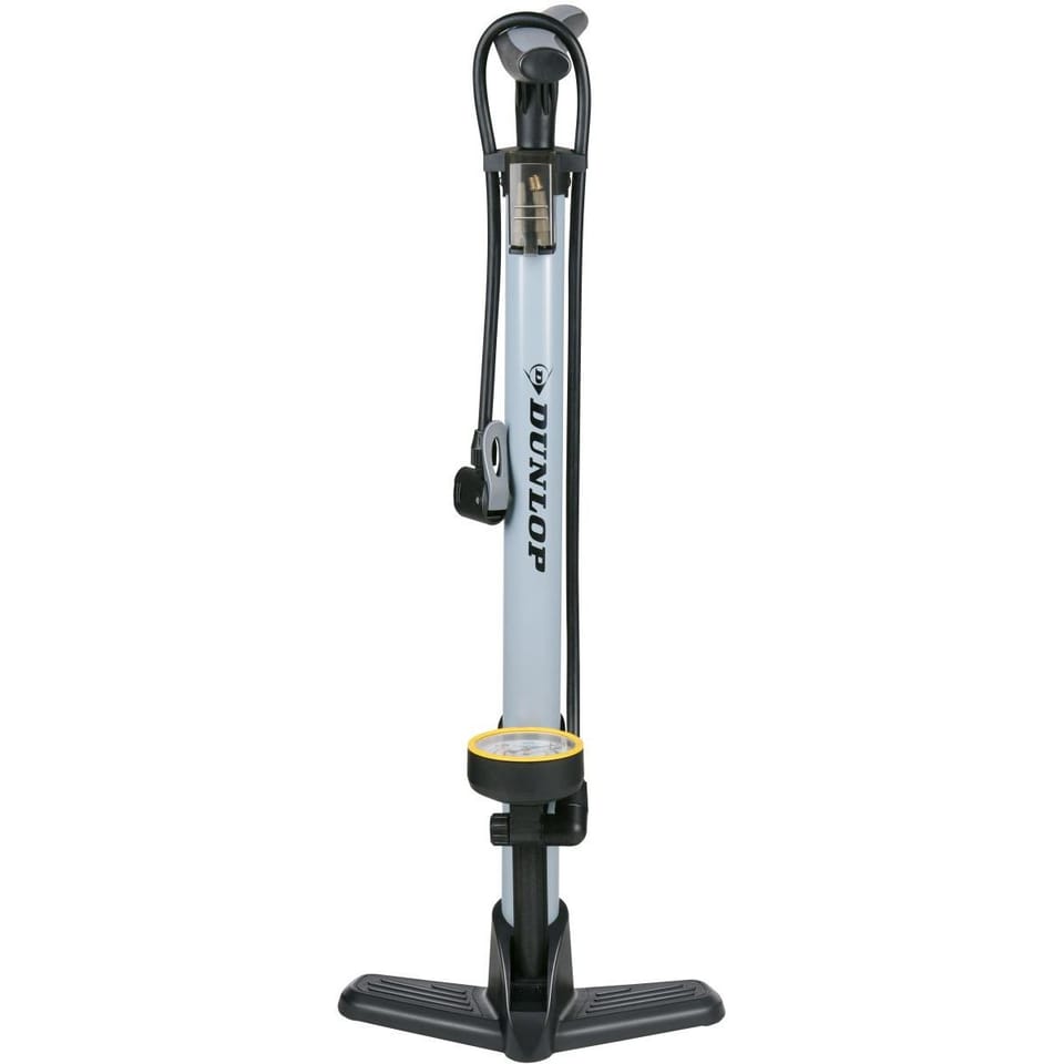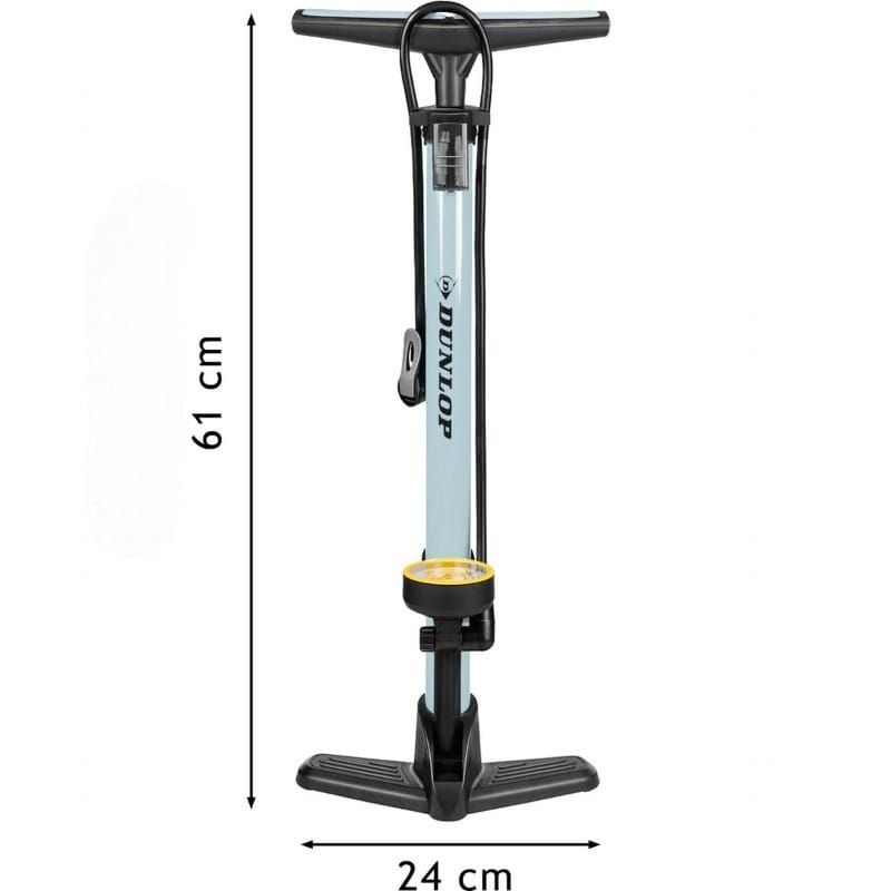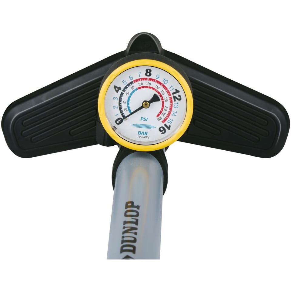 POMPKA WARSZTATOWO ROWEROWA DUNLOP 230Psi (16Bar) Z MANOMETREM SZARA to praktyczne narzędzie, do pompowania opon rowerowych i innych pojazdów takich jak motocykle czy samochody.