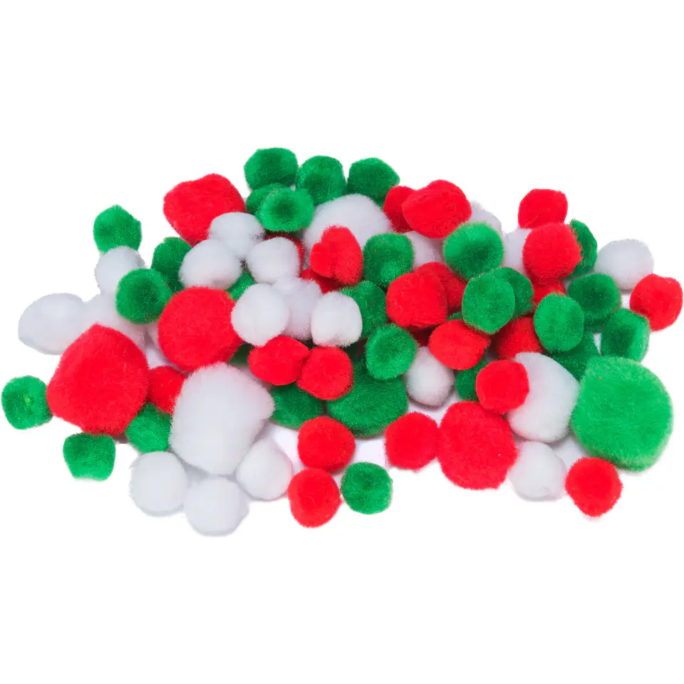 Pompony mix rozm. czerwone/białe/zielone 78szt. POM43