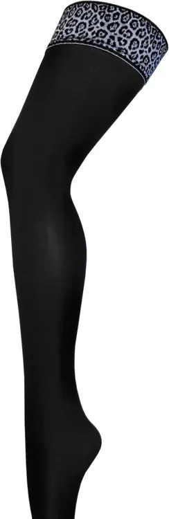 Pończochy samonośne, kryjące 60 DEN z lycrą, wykończone modnym wzorem w centki. Pończochy powlekane silikonem, co zapewni komfort noszenia. Skład: 94% poliamid, 6% elastan (lycra).