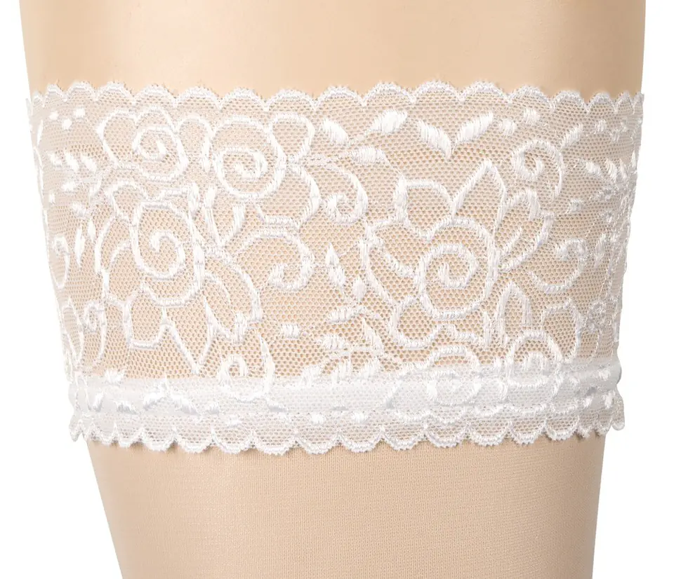 Czasami musi być biały! Pończochy do pończoch z koronkową obwódką o szerokości 7 cm.
