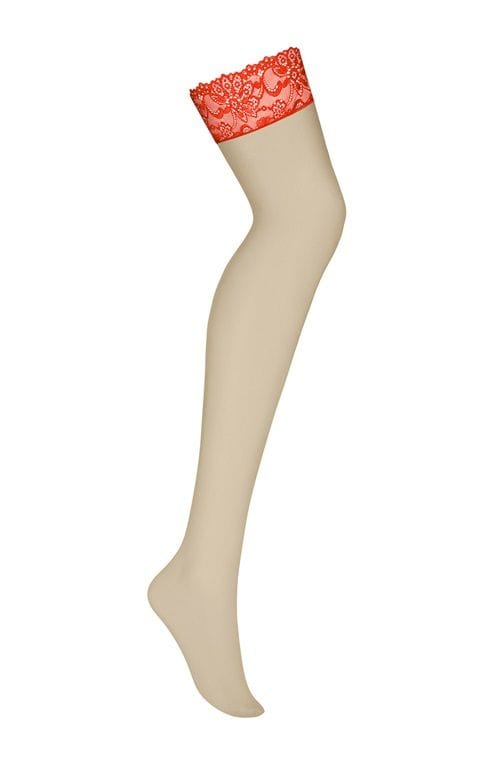 Zmysłowe pończochy ozdobione czerwoną koronką, nie mogą się doczekać, aby dać Ci fantastyczny wygląd i mnóstwo radości! Teraz jest idealny czas, aby je zdobyć, więc... śmiało! Kiedy założysz te pończochy, przejdziesz prosto do ekscytującej krainy przyjemności!