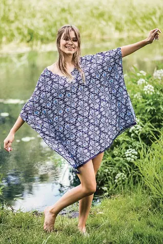 Szerokie, luźne poncho. Wykonane z wzorzystej, wyjątkowo miękkiej dzianiny. Skład: 100% wiskoza.