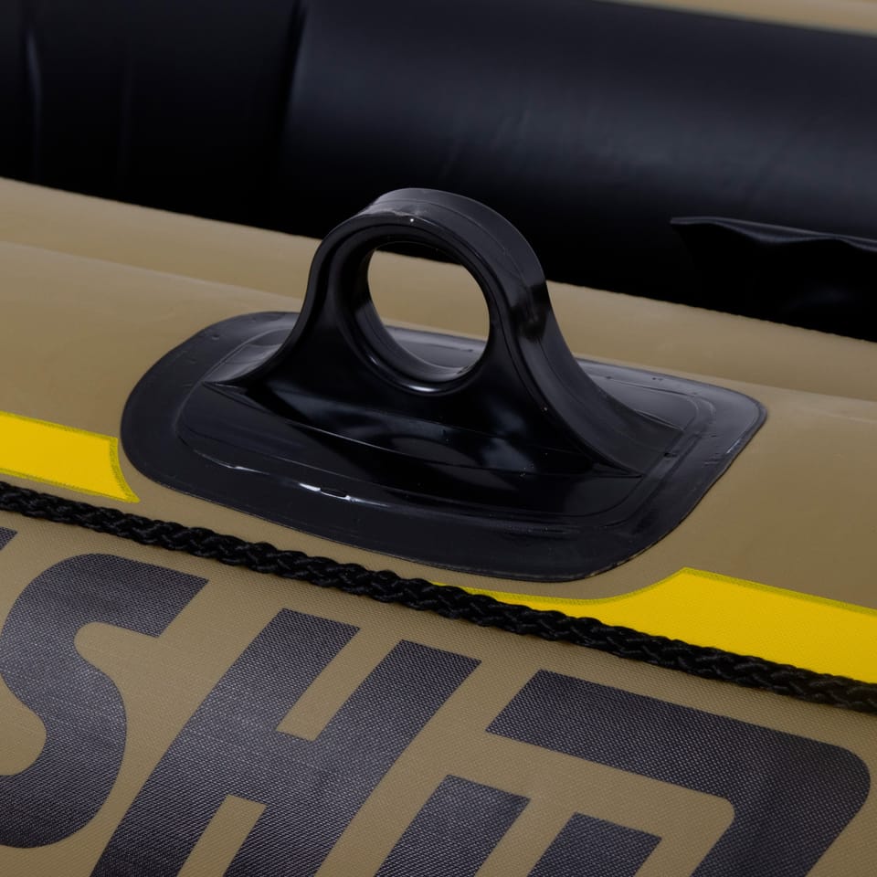 4 - komorowy system nadmuchiwania pomoże Ci bezpiecznie dopłynąć do brzegu w przypadku przebicia jednej warstwy, a specjalny uchwyt czołowy ułatwi jego ewentualne holowanie. Zaletą pontonu jest miękka dmuchana podłoga oraz wiele udogodnień w postaci uchwytów na wiosła, na wędki, linki holowniczej oraz małej torby na drobiazgi. W zestawie oprócz pontonu znajdziesz dodatkowo łatkę naprawczą, pompkę do nadmuchiwania, linkę holowniczą oraz dwa wiosła.