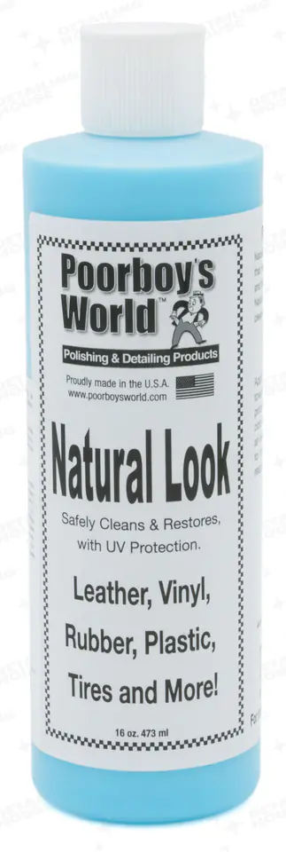 Poorboy's World Natural Look – to środek pielęgnacyjny oparty na bazie wody. Delikatnie czyści i podkreśla naturalny wygląd powierzchni plastikowych, winylowych oraz gumowych. Pokryta produktem powierzchnia zyskuje barierę ochronną przed szkodliwym promieniowaniem UV. Produkt nie zawiera szkodliwych chemikaliów i niebezpiecznych toksyn przez co nie niszczy powierzchni. Poorboy's World Natural Look pozostawia suchą powierzchnię nie tworząc lepkiej warstwy za to wyraźnie odżywia i nadaje jej zdrowy wygląd. Zapobiega utracie koloru i zabezpiecza powierzchnię przed powstawaniem drobnych pęknięć i złuszczeń.