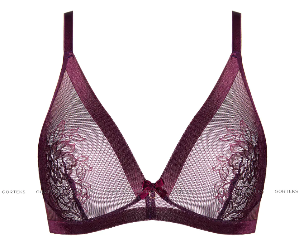 Uwodzicielski miękki biustonosz zapewniający maksymalne uczucie komfortu podczas noszenia. Miseczki wykonane z eleganckiej koronki ozdobionej kwiatowym motywem o satynowym wykończeniu.