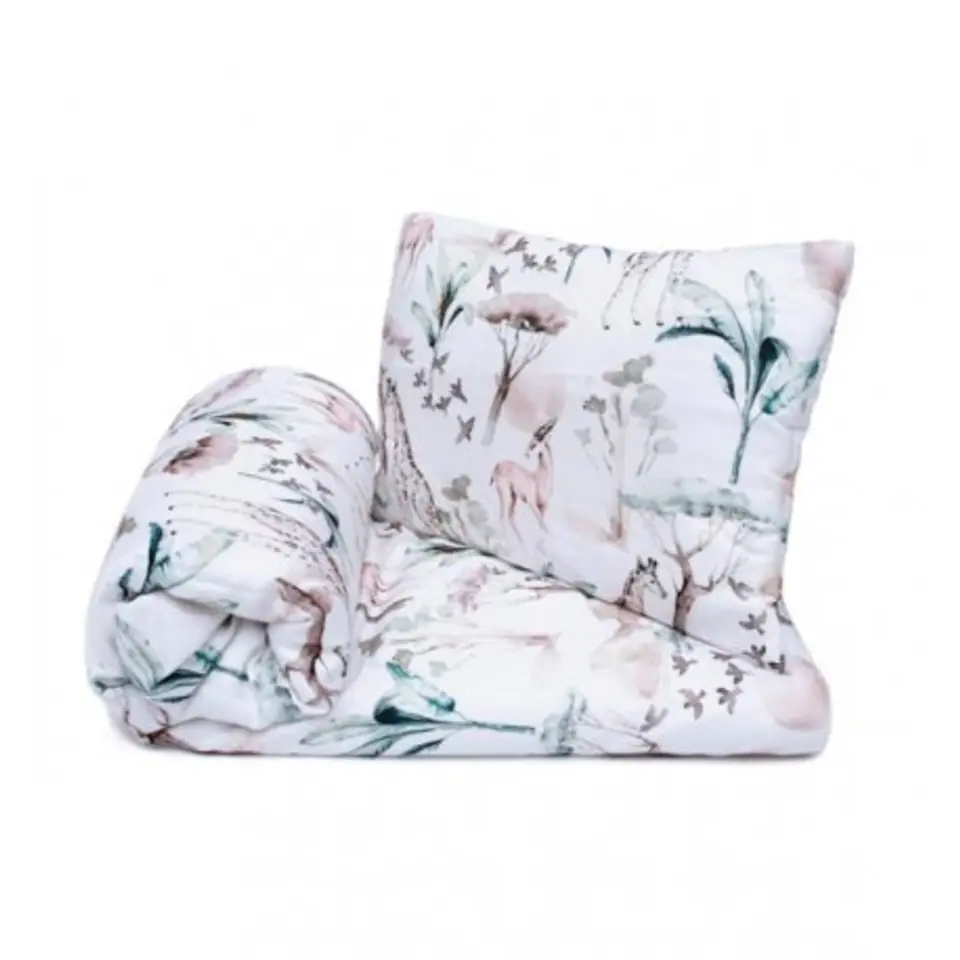 Pościel Bambusowa (Safari) Komplet pościeli bambusowej z płaską poduszką dla niemowlaka z antyalergicznym wypełnieniem. Kołderka jest całoroczna i bardzo lekka. Poduszka jest płaska dzięki czemu mogą korzystać z niej najmłodsi. Oddychająca tkanina ma właściwości antybakteryjne, antygrzybiczne, doskonale chłonie wodę oraz szybko schnie, ma działanie termoregulacyjne i jest niezwykle delikatna dla wrażliwej skóry maluszka. Ten niezwykle milutki i mięciutki produkt wykonany jest z materiałów najwyższej jakości. Dzięki właściwością termoregulacyjnym zapobiega przegrzewaniu sie maluszka. Tkanina Bambus zapobiega przed atakiem bakterii i grzybów. Zapobiega także rozwijaniu się przykrego zapachu. Komplecik składa się z poduszki i kołderki, które posiadają ciepłe, antyalergiczne wypełnienie silikonowe na stałe zszyte z materiałem. Rozwiązanie to jest bardzo higieniczne i praktyczne, sprawdzi się w domu,na wyjazdach oraz w przedszkolu. Autorski wzór zapewni niepowtarzalność wystroju pokoju maluszka. Zestaw Pościeli został uszyty ręcznie w Polsce, z certyfikowanych tkanin, z niezwykłą dbałością o każdy detal. Właściwości: niezwykle miękkie antybakteryjne doskonale pochłaniają wilgoć termoregulacyjne - chłodzą latem, trzymają ciepło zimą działają łagodząco na skórę dziecka ekologiczne Produkt szyty w Polsce, ręcznie z wykorzystaniem najlepszych jakościowo materiałów. Wszystkie produkty PULP zawierają certyfikat Oeko-Tex Standard 100 (dopuszczone do bezpośredniego kontaktu ze skórą noworodka). Pranie bez obaw o utratę jakości: - prać w temperaturze 40°, program delikatny, lekkie wirowanie, - można prasować, - nie stosować wybielaczy, - nie suszyć w suszarce bębnowej. 10786-22
