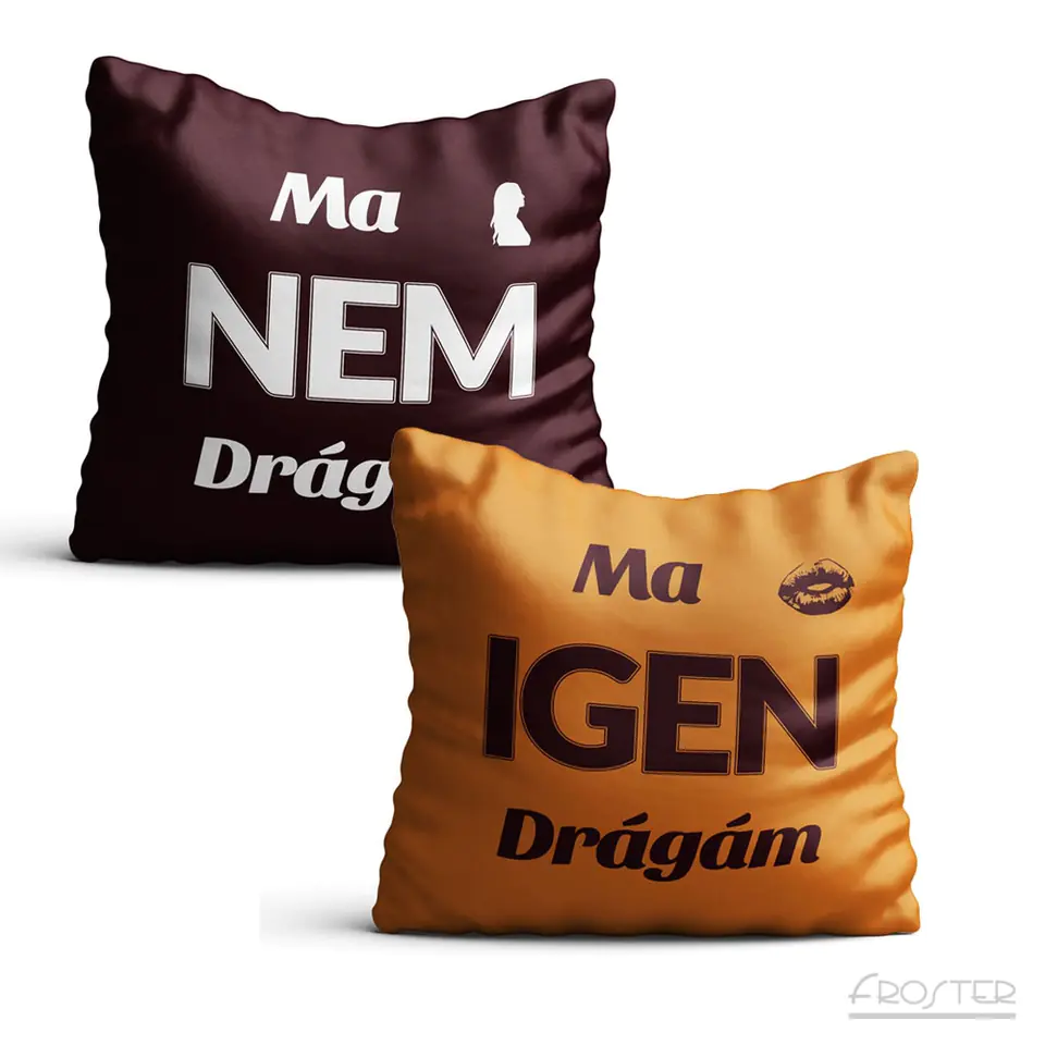 - Poszewka sprzedawana jest bez wypełnienia. Nadruk dwustronny. Napis na produkcie: Ma IGEN Drágám /Ma NEM Drágám. Produkt w węgierskiej wersji językowej. Materiał: satyna (100% poliester). Wymiary: 40 cm (długość), 40 cm (szerokość). Można prać w temperaturze 30 stopni. OSTRZEŻENIA:Trzymać z dala od ognia! Wymiary w opakowaniu: 0,5 x 23,0 x 25,0 (cm).Waga: 0,05 kg. Wyprodukowano w Polsce.