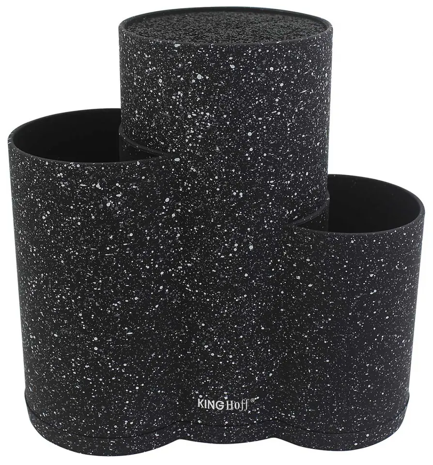 Potrójny stojak blok na noże i przybory kuchenne. Wypełnienie bloku stanowią pręciki z tworzywa sztucznego. Dzięki temu można przechowywać w nich noże o różnej grubości, szerokości i długości. Pozostałe 2 komory można wykorzystać dowolnie na przybory i akcesoria kuchenne.
