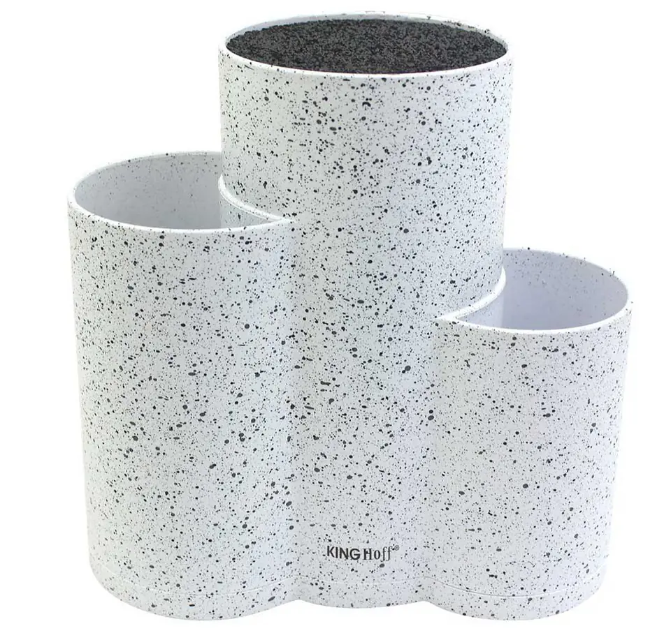 Potrójny stojak blok na noże i przybory kuchenne. Wypełnienie bloku stanowią pręciki z tworzywa sztucznego. Dzięki temu można przechowywać w nich noże o różnej grubości, szerokości i długości. Pozostałe 2 komory można wykorzystać dowolnie na przybory i akcesoria kuchenne.