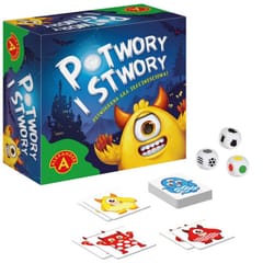 Prosta gra pełna emocji, w której liczy się spostrzegawczość i refleks. Do dyspozycji mamy rozłożone na stole karty z potworami oraz 3 kostki, które wskażą kształt, kolor oraz wzór poszukiwanego stworka. Zadanie polega na jak najszybszym dopasowaniu detali i odkryciu jakiego potwora wskazują kostki. Wygrywa ten kto zdobędzie najwięcej kart.karty potworów - 36 szt., kostka koloru - 1 szt., kostka kształtu - 1 szt., kostka wzoru - 1 szt., klepsydra - 1 szt., notes – 1 szt., instrukcja.