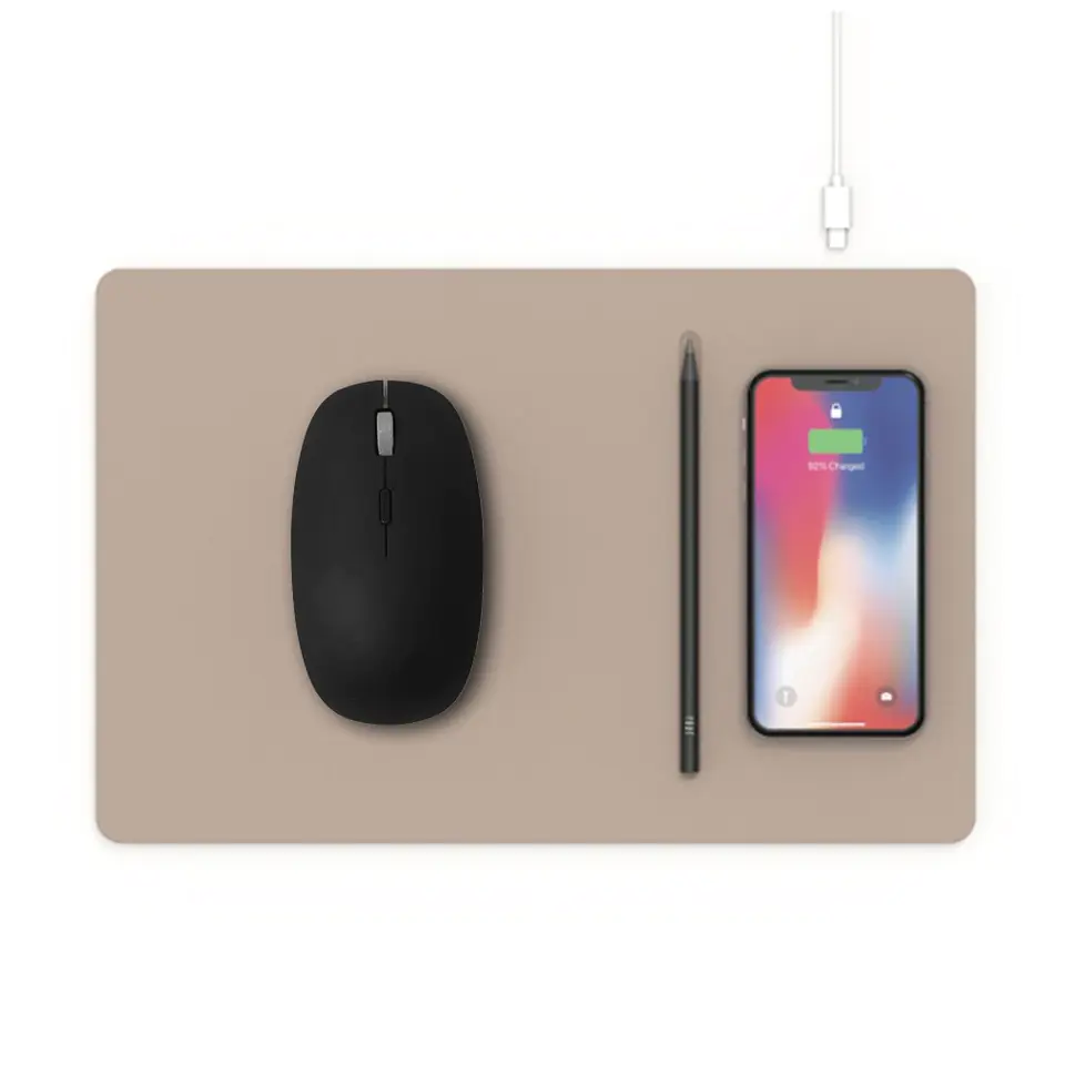 POUT Hands3 Pro Combo - Zestaw, mysz bezprzewodowa i podkładka pod mysz z szybkim ładowaniem bezprzewodowym, kolor kremowy
